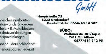 Wer im Raum Ost steiermark und darüber hinaus professionelle Betreuung mit Herz bei Steuerfragen sucht, hat es gut. Bei Lafer + Partner in Gleisdorf und Feldbach arbeitet ein hervorragendes Team. „Bei uns sind Fachkompetenz und Begeisterung bei jedem Arbeitsschritt spürbar. Wir beraten kleinund mittelständische Betriebe mit dem gebündelten Knowhow. So finden wir für jedes Anliegen eine individuelle Lösung“, erläutert Geschäftsführer und Partner MMag. Werner Lafer.