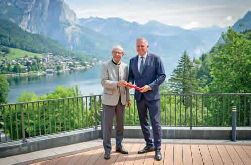 Mit Blick auf den Grundlsee - das „steirische Meer“ - wurde kürzlich das symbolische Staffelholz der Landeshauptleutekonferenz vom Salzburger Landeshauptmann Wilfried Haslauer an seinen steirischen Amtskollegen Mario Kunasek übergeben. Die Steiermark hat für das zweite Halbjahr 2025 die Vorsitzführung in der Landeshauptleutekonferenz inne. Ebenso erfolgte die Übergabe der Präsidentschaft des Bundesrates. Der symbolische Schlüssel wurde von der derzeitigen Bundesratspräsidentin Andrea Eder-Gitschthaler an Bundesrat Peter Samt übergeben. An der Vorsitzübergabe teilgenommen hat auch Landtagspräsident Gerald Deutschmann. Für die stimmungsvolle Umrahmung mit Tradition und Brauchtum auf der Terrasse des Mondi Hotels am Grundlsee sorgten die Grundlseer Geigenmusi und „die Schab“ - Teil des Bad Mitterndorfer Nikolospiels, das durch die UNESCO in das nationale Verzeichnis