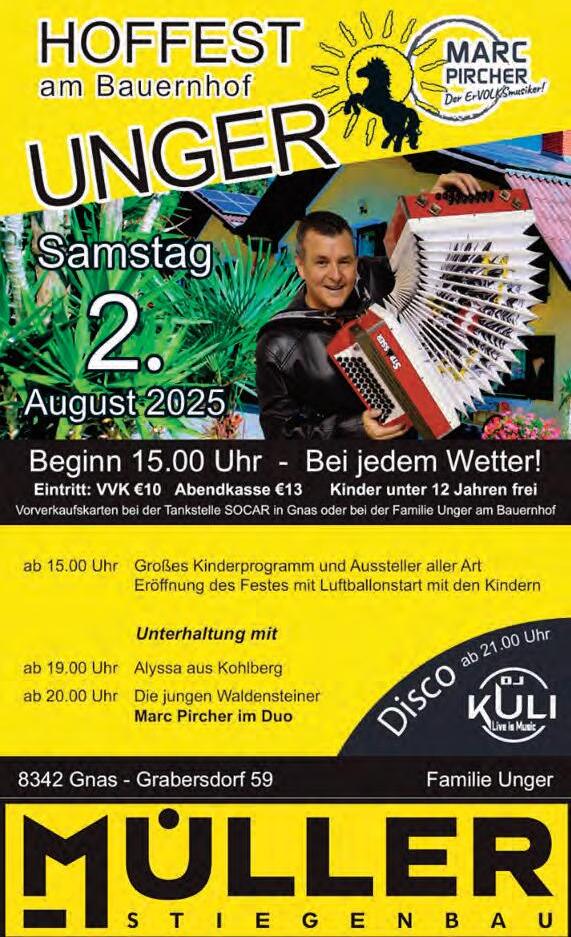 Gnas: Hoffest am Bauernhof Unger mit Live-Musik, Kinderprogramm und Disco, Grabersdorf 59, ab 15.00