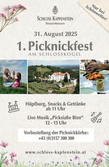 Neuhaus/Kl.: „Das arbeitsreiche Jahr der Biene“, Gartenführungstag mit Honigverkostung im Obstparadies Lendl,10.00 4. September Neuhaus/Kl.: „Die Rache der Feldermaus“, Operette mit dem Uhudlerlandestheater, Schloss Tabor, 20.00 (bis 14.9.)