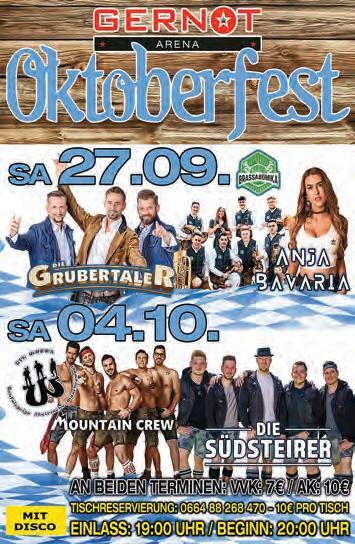 Jennerdorf: Oktoberfest mit den Wuppa, Mountain Crew und den Südsteirern, Gernot-Arena, 20.00