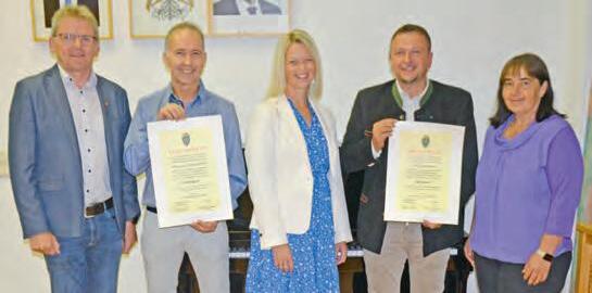 Im Rahmen der letzten Wenigzeller Gemeinderatssitzung wurden zwei Mitgliedern, welche als Vizebürgermeister und Gemeinderäte viele Jahre tätig waren, durch Bezirkshauptfrau Kerstin RaithSchweighofer Urkunden seitens des Landes Steiermark überreicht. Günter Holzer und Peter Pittermann waren je 10 Jahre in ihren Funktionen zum Wohle der Wenigzeller Bevölkerung tätig. Der aktuelle Gemeinderat gratulierte herzlich.