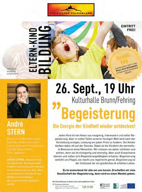Fehring: „Begeisterung. Die Energie der Kindheit wieder entdecken!“, EKB Steirisches Vulkanland-Vortrag mit André Stern, Kulturhalle Brunn, 19.00