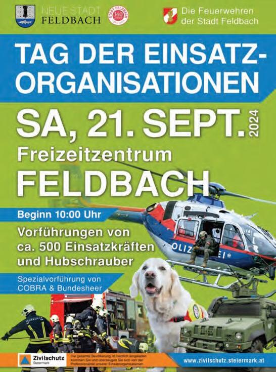 Feldbach: Tag der Einsatzorganisationen mit Vorführungen, Einsatzübungen sowie einer Bewegungsund Gesundheitsmesse, Freizeitzentrum, ab 10.00