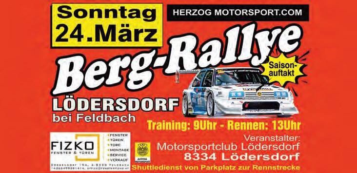 Kirchberg/R.: Brassquintett „Blechreiz“, Sporthalle, 18.00 Lödersdorf/Feldbach: Berg-Rallye, Motorsportclub, Training: 9.00, Rennen: 13.00