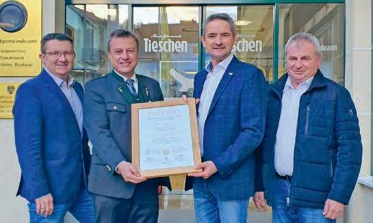Auch der Tieschener Gemeindevorstand nahm das Zertifikat entgegen.
