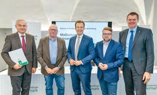 Die steirische Landesregierung hat den teilweise zu langen Wartezeiten im Gesundheitswesen den Kampf angesagt. Unmittelbar nach seinem Amtsantritt hat Gesundheitslandesrat Karlheinz Kornhäusl daher das Projekt „Kürzere Wartezeiten“ gestartet. Nun präsentierte er gemeinsam mit Klubobmann Hannes Schwarz, Gesundheitsfonds-GF Michael Koren und den KAGesVorständen Gerhard Stark und Ulf Drabek weitere Verbesserungen für die Patienten. „Ich habe den Steirern versprochen, dass ich daran arbeite, dass sie rascher zu Terminen und schneller zu Behandlungen kommen. Durch die gute Zusammenarbeit aller Partner im Gesundheitswesen haben wir in den vergangenen Monaten und Jahren bereits wichtige Schritte zu einer besseren Gesundheitsversorgung umsetzen können, aber es liegt auch noch viel Arbeit vor uns", so Kornhäusl, der sich