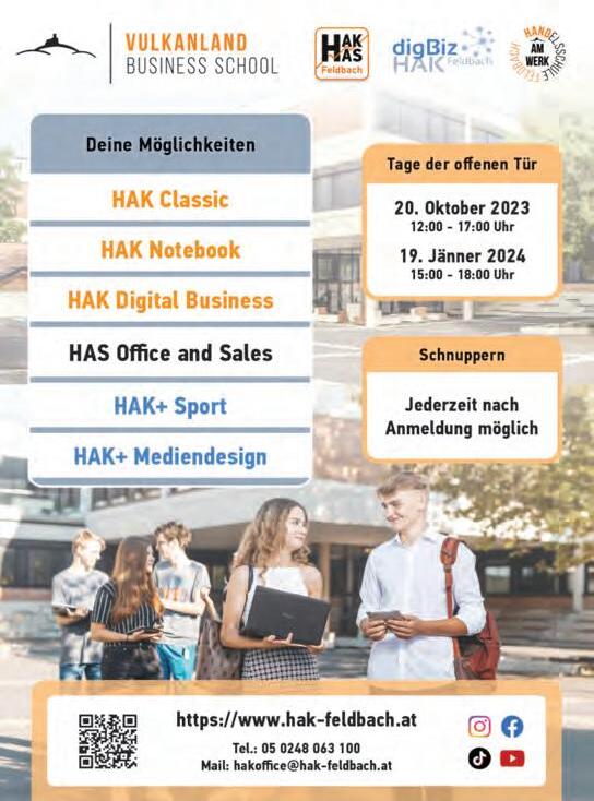 folgreich –das zeugt von einer hochqualitativen Ausbildung in den Betrieben. Es ist bedeutend, dass wir dieses Angebot nun auch in Bad Radkersburg, zusätzlich zu den weiterführenden Schulen, zeigen dürfen”, erklärt Regionsvorsitzender LAbg. Franz Fartek. Wie gewohnt reicht das Angebot an den Messetagen in Feldbach wie auch in Bad Radkersburg von südoststeirischen Lehrbetrieben und Schulen bis hin zu Beratungseinrichtungen. Ausstellende übermitteln Informationen, bieten individuelle Hilfestellungen und unterstützen mithilfe von Praxisübungen bei der Entscheidung zum persönlichen Traumberuf. Alle Infos zur Messe findet man auch auf www.bbo-messe.vulkanland.at Am 4. Oktober (18.30 Uhr) findet ein digitaler Elternabend statt. Infos dazu finden Sie ebenfalls auf der oben genannten Webseite.