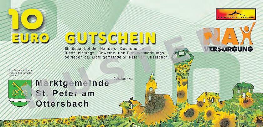 ner Summe von 330 € erhält man einen 10 Euro-Gutschein im Gemeindeamt. Der Gutschein kann dann bei allen heimischen Betrieben in Tieschen (Nahversorger, Unternehmer, Weinbauern, Direktvermarkter bzw. Buschenschenken) eingelöst werden. „Der Erhalt unserer Nahversorger sollte für jeden eines der wichtigsten Anliegen sein! Es ist unser Lebensumfeld. Schätzen, stärken und erhalten wir es gemeinsam!“, so Bgm. Martin Weber.