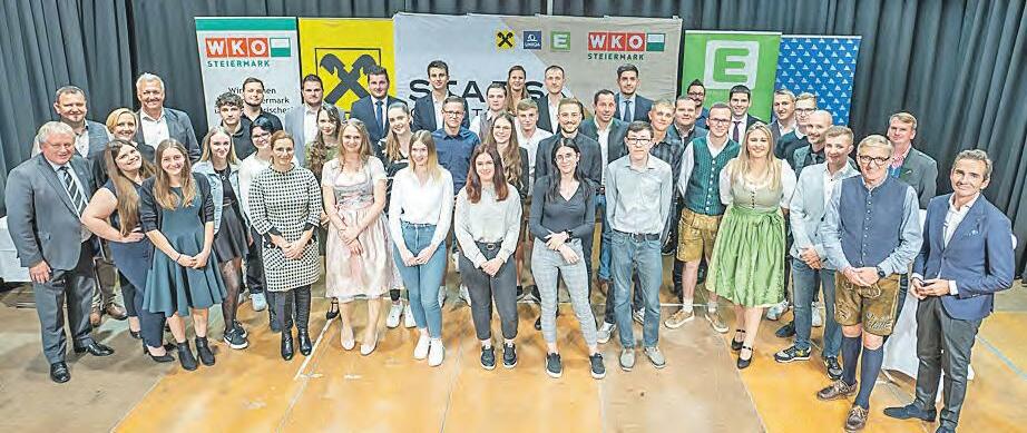 solventen von Meister- und Befähigungsprüfungen jährlich als „Stars of Styria” –powered by Raiffeisen, Uniqa und Energie Steiermark –geehrt. Vor Kurzem wurden in Straß die Trophäen und Urkunden im feierlichen Rahmen überreicht: Rund 42 Meister, 34 Lehrabsolven-