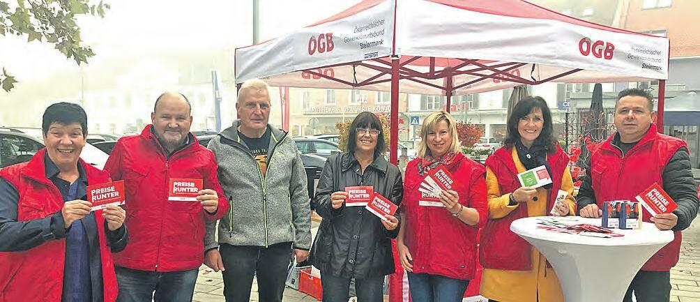 Mit Aktionen in allen steirischen Bezirken und in ganz Österreich wurde kürzlich seitens des ÖGB weiterhin auf die schwierige Situation der Preisexplosionen aufmerksam gemacht. „Der Österreichische Gewerkschaftsbund legt seit vergangenem Herbst konkrete Forderungen und Modelle zur Entlastung von Österreichs Haushalten vor, doch außer Einmalzahlungen und Ankündigungen ist bisher zu wenig für die Abfederung der finanziellen Mehrbelastung der