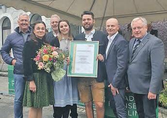 ten und 31 Ausbildungsbetriebe nahmen mit strahlenden Gesichtern ihren Stern und ihre Urkunde auf der Bühne von WKO Regionalstellen Obmann Lampl, WKO Präsident Herk und WKO-Leibnitz-Regionalstellenleiter Majcan entgegen.