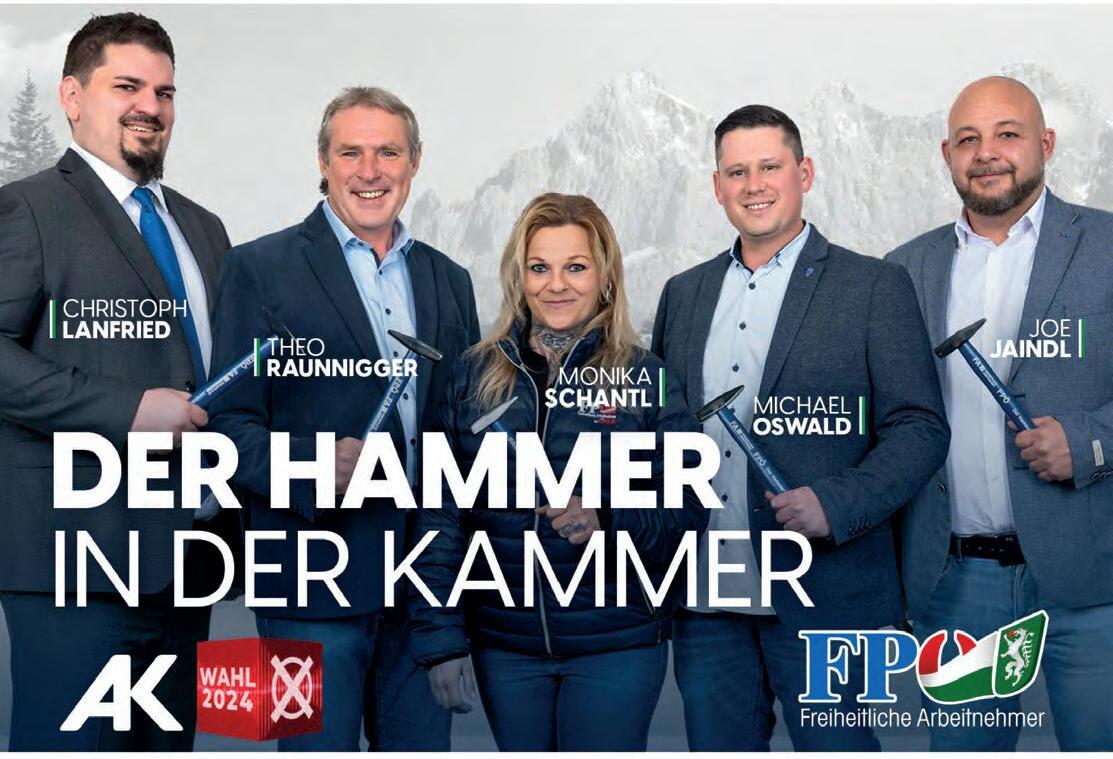einen Sozialstaat wie Österreich unwürdig, wenn langjährige Bürger überlegen müssen, ob warmes Mittagessen oder Heizung in der Wohnung. Land Steiermark, Stichwort Spitalsfiasko, Schließung von Spitälern, überfüllte Ambulanzen, stundenlange Wartezeit für Mütter mit Kleinkindern, Ärzte- und Schwesternmangel und permanente negative Schlagzeilen über den Spitalserhalter KAGES. Übrigens, der neue Gesundheitslandesrat kommt auch vom ÖAAB. Zur Fraktion Solialistischer Gewerkschafter FSG nur ein Stichwort und das heißt „Andy Babler“. Über die Streitigkeiten bei den roten Genossen berichten ja die Zeitungen täglich. Die Freiheitlichen Arbeitnehmer stehen im besten Einvernehmen mit LPO Mario Kunasek. Ein klares Ja zur AK. Ohne Wenn und Aber. Natürlich schließt diese Aussage Reformen nicht aus. Umso höher die Wahlbeteiligung umso gewichtiger ist der Einfluss in der Tagespolitik für die Kollegen. In der letzten Funktionsperiode war die FA wieder Taktgeber in Sachen Besserstellung von Arbeitnehmern. Der breite Bogen reichte von der Blackout Vorsorge über die fixe Beibehaltung des Mutter-Kind-Passes bis zur Schaffung von Wohnungseigentum für Arbeitnehmer. Zukünftige Schwerpunkte werden die Erhöhung der Abfertigung NEU auf 2,5 % pro Jahr und Mindestlohn 2.000 Euro. FA/FPÖ – der Hammer in der Kammer.