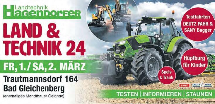 Bad Gleichenberg: Land & Technik Messe, Hagendorfer Landtechnik, Trautmannsdorf 164 (bis 2.3.)