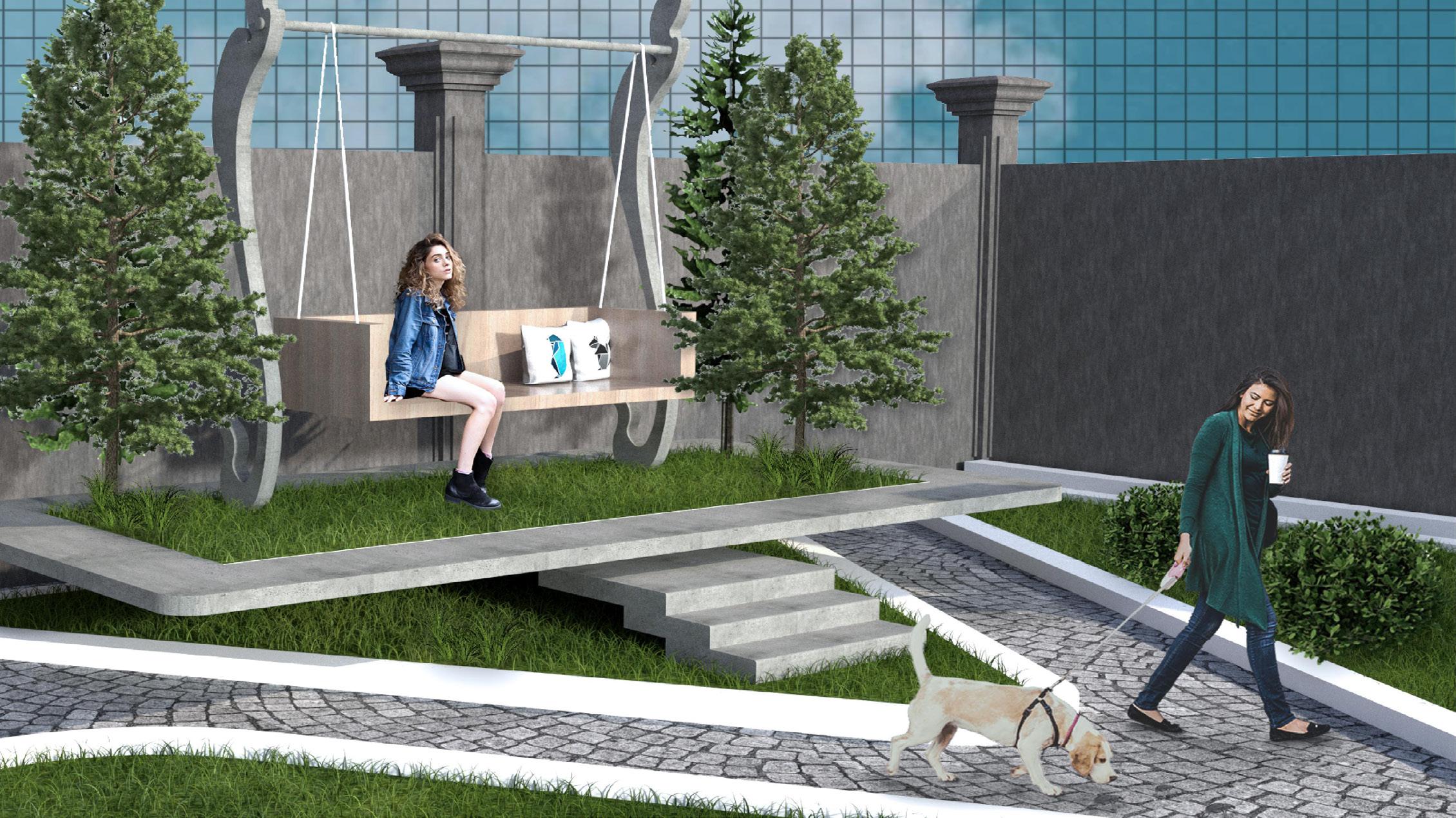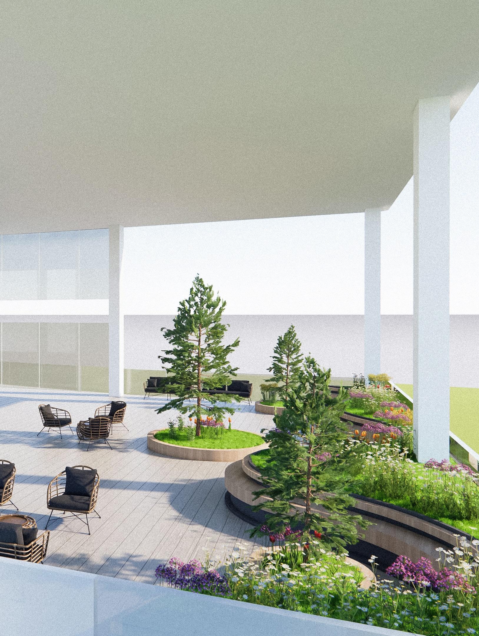 Rather than just an enclosed office, we want to add the green space that act as outdoor park with garden and natural air so that the office workers can relax and enjoy during the break.