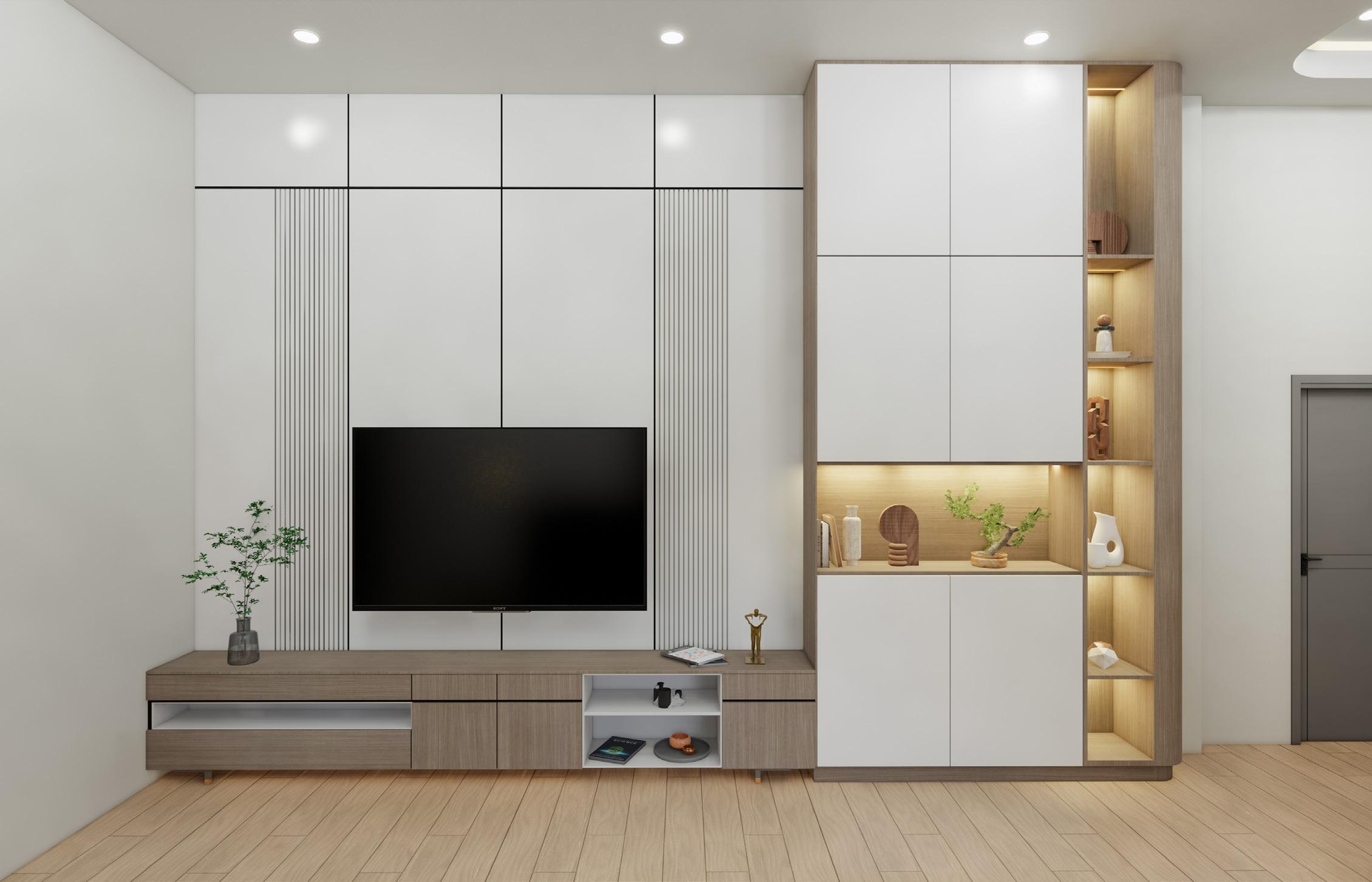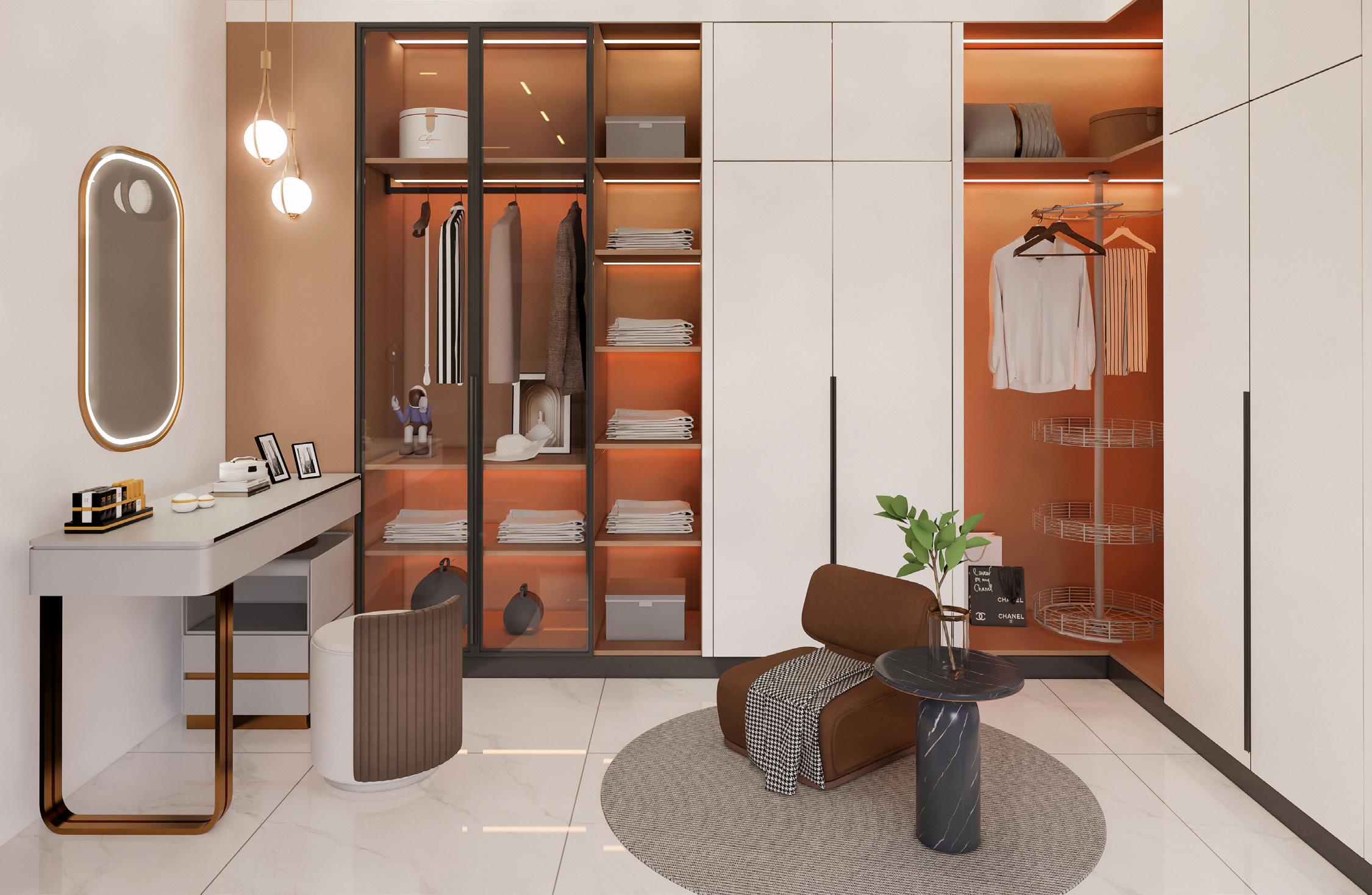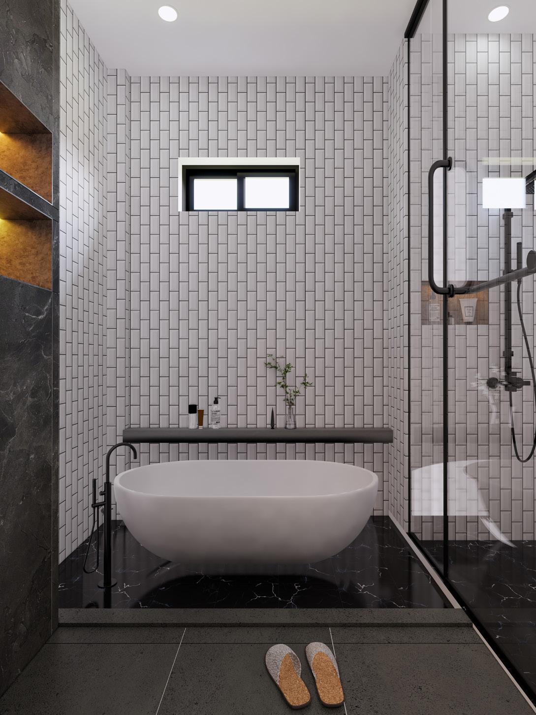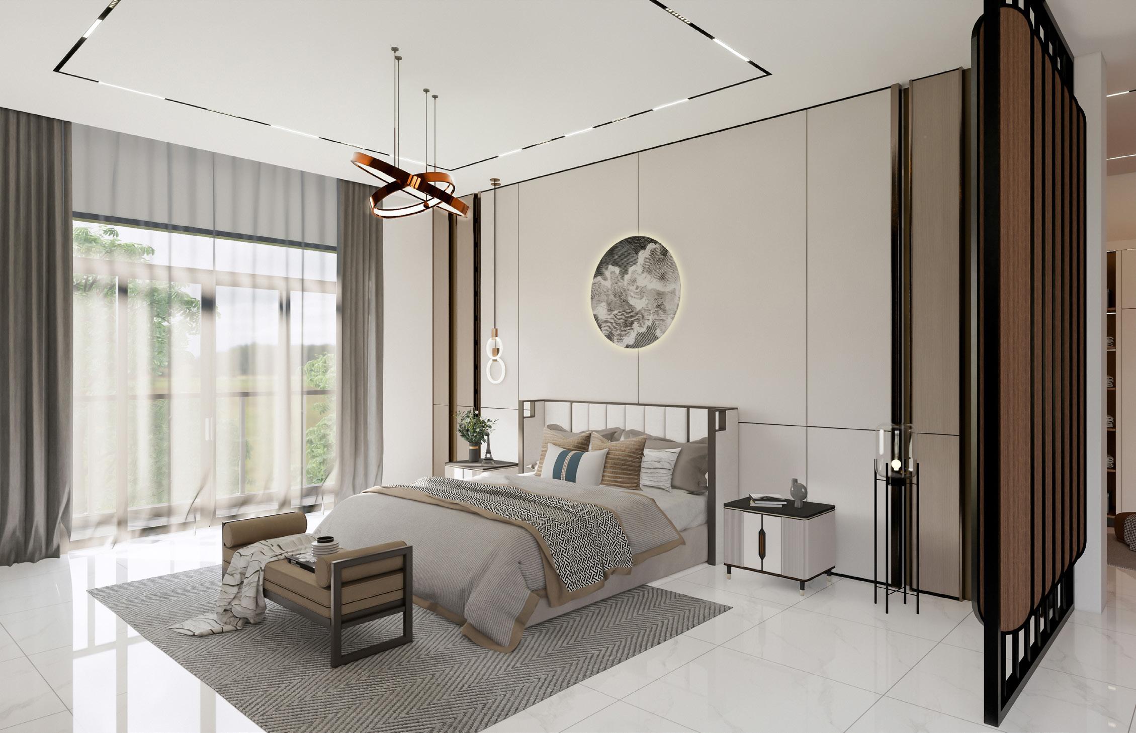 TThe use of marble and wood creates a sense of modernism and tranquility. The living room’s double height provides a sense of spaciousness and generosity.