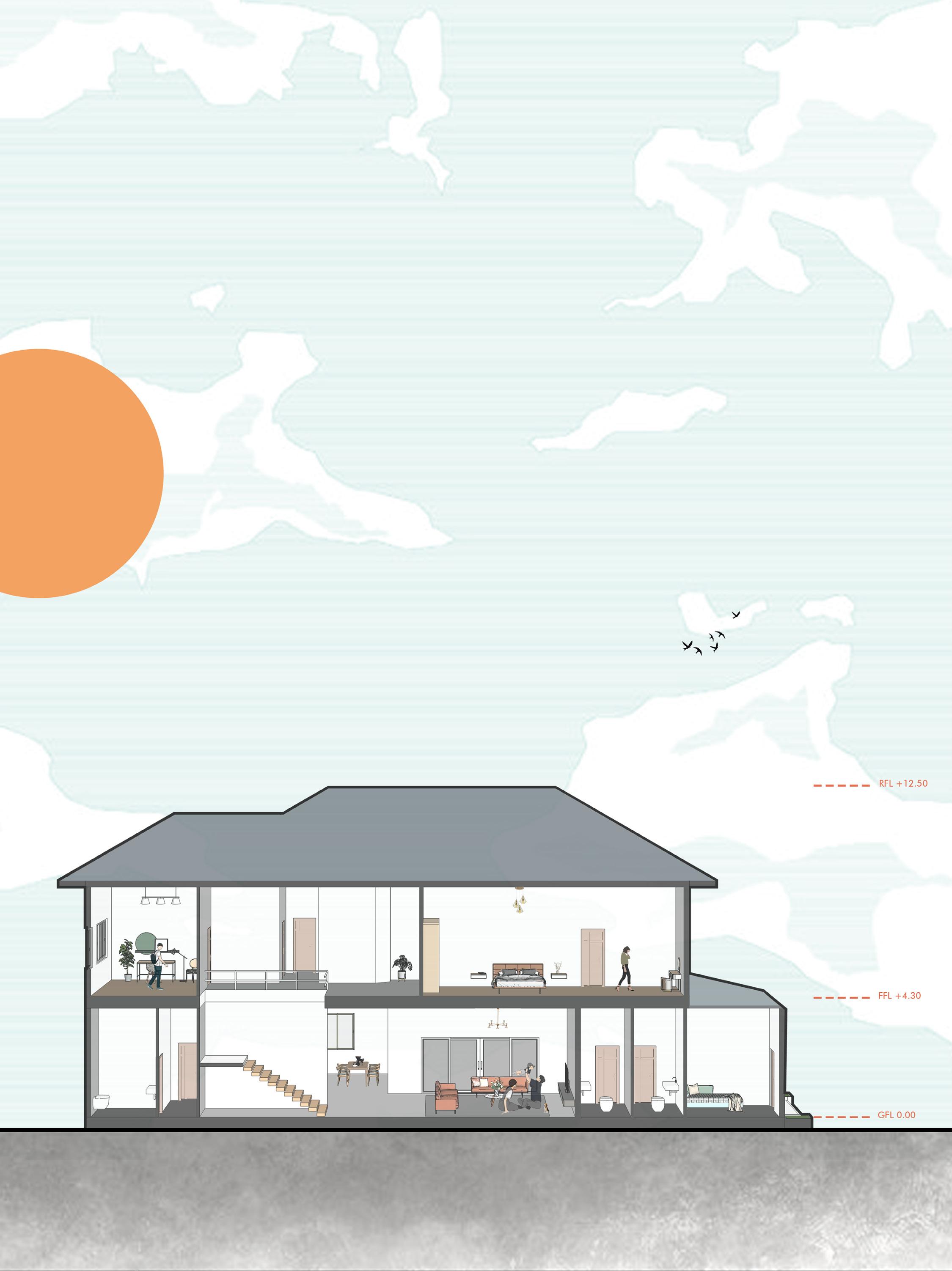Our main design is using the nature elements to combine and to keep the impact to environment at its lowest by preserving the site existing tree.