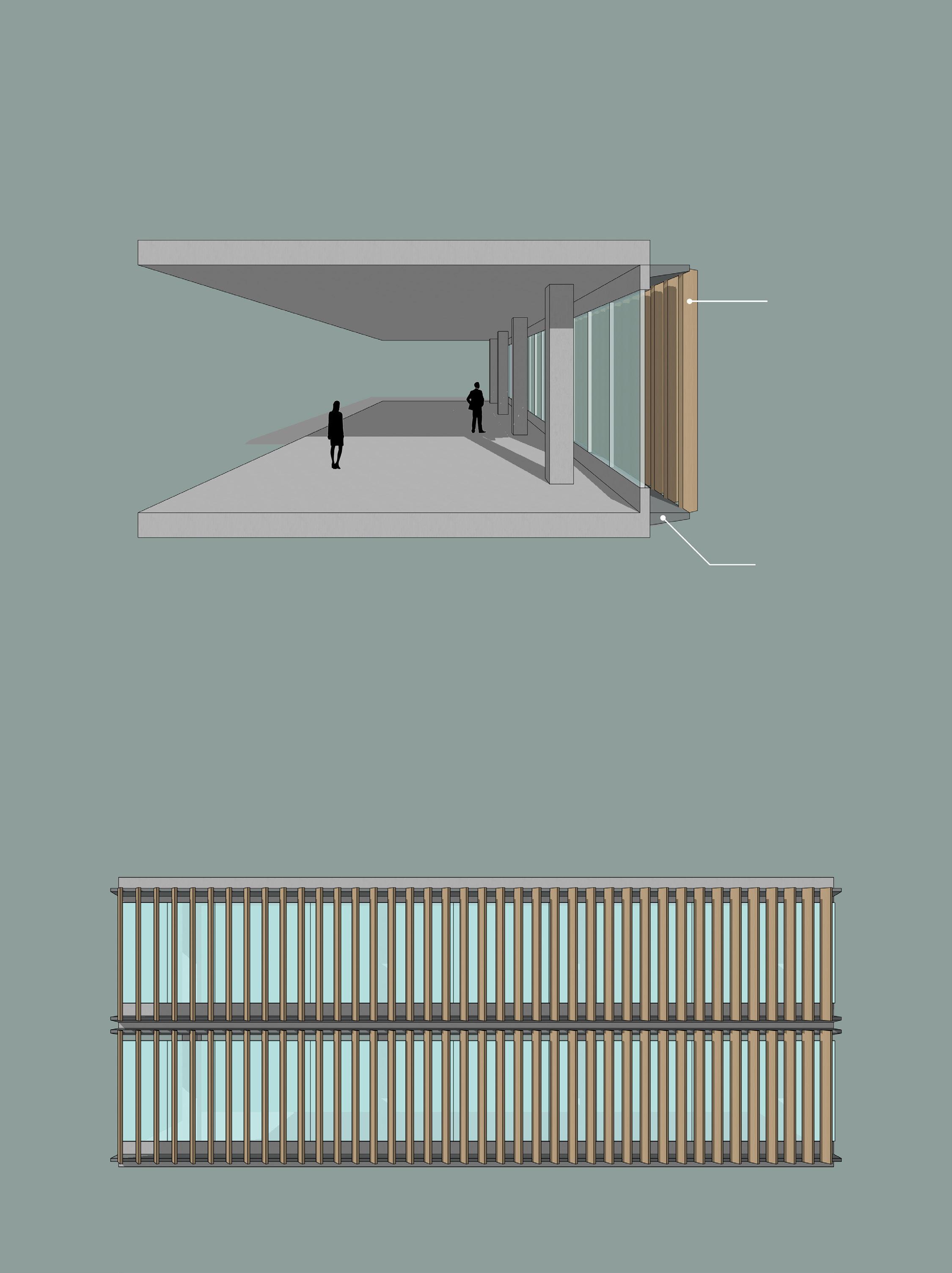 We decide to choose the double skin facade or well known as brise soleil in our project which is a type of solar shading system that uses a vertical aluminium louver to to control the amount of sunlight and heating in to our building.