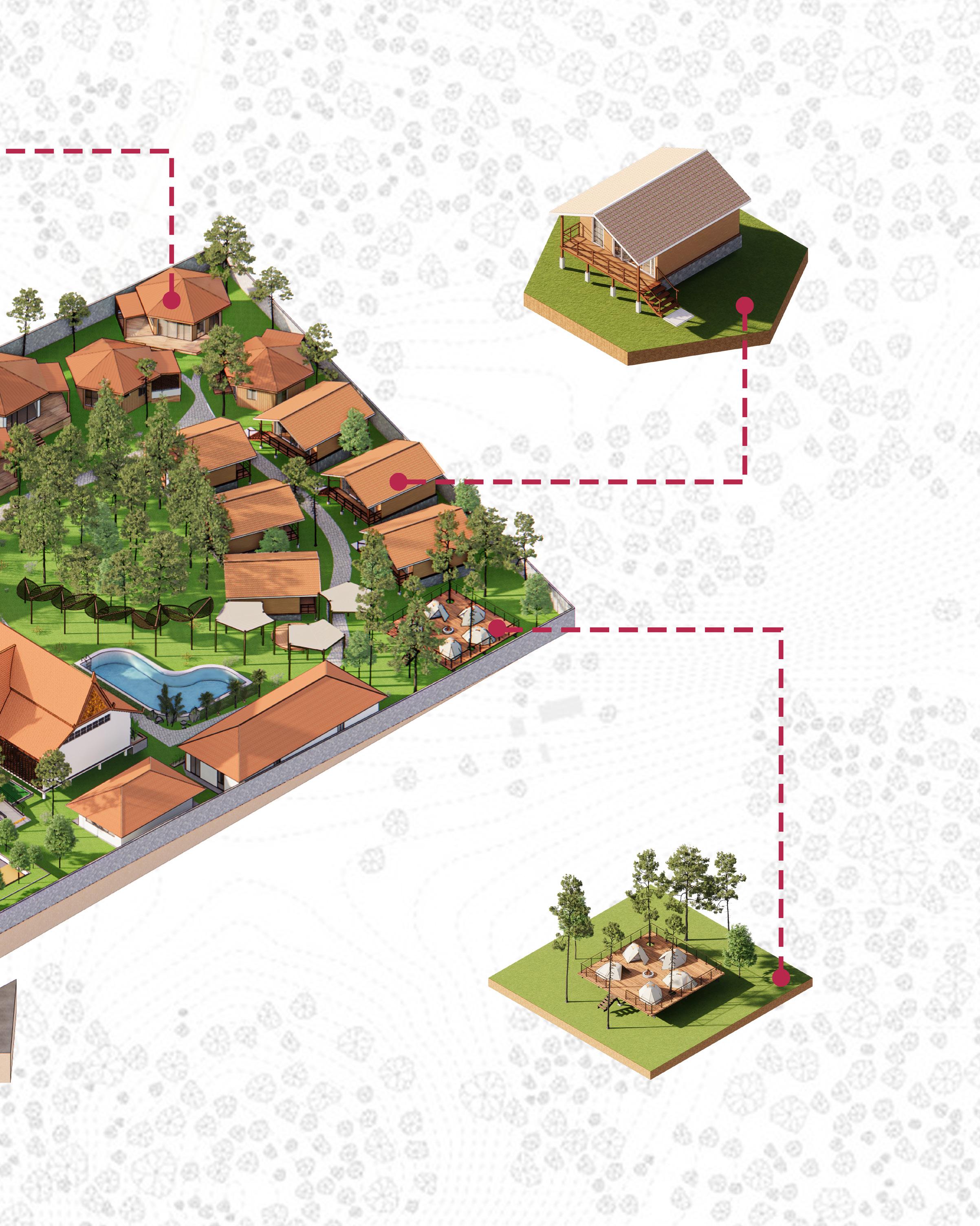 Le Kusuma is a boutique resort located in Cambodia’s north-east region in Sen Monorom, Mondulkiri Province with the dimension of 100 meters by 70 meters.