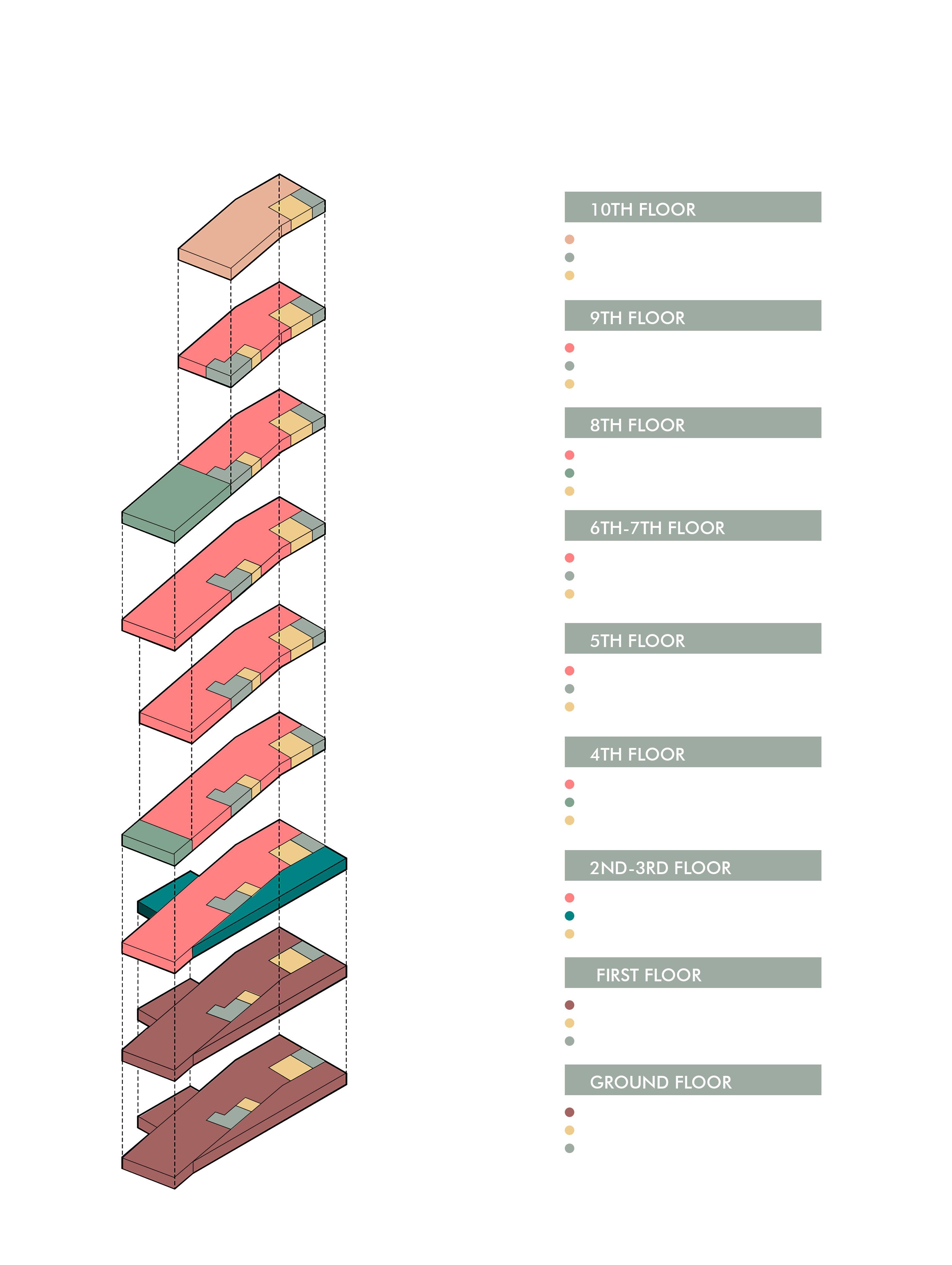 The total building floor is set to be 10 floors with a skybar at rooftop of the building and 2 floor of underground parking build on the area of 5000square meters.
