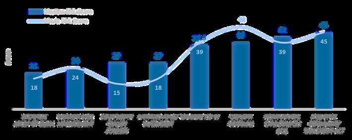 The RNL helps recommend the most appropriate level of care for adults, based on observed needs across 17 different dimensions. A higher RNL score is typically indicative of a higher level of need. The median RNL score across the system is 27 with 18 being the most frequent score reported. Lower acuity outpatient clinics report lower median RNL scores as compared to more intensive case management and institutional care programs.