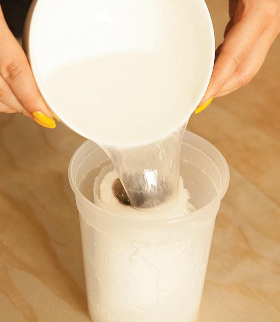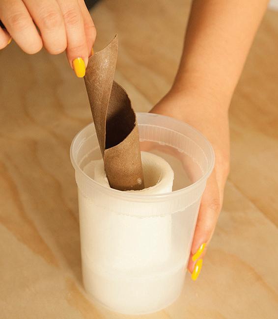 Replace the lid and turn the container over to soak. Leave for five minutes, then turn it over and remove the cardboard center.