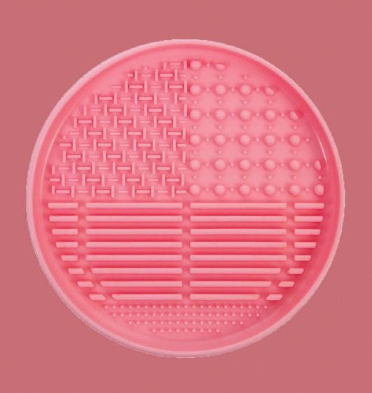 Add a drop of your soap of choice to a textured cleansing pad (or even something like your palm), and swirl the brush into the soap until it’s fully lathered up and any pigment or dirt is removed. Or, if you’re using a bar soap, gently rub your makeup brush or sponge into the soap, creating a lather.