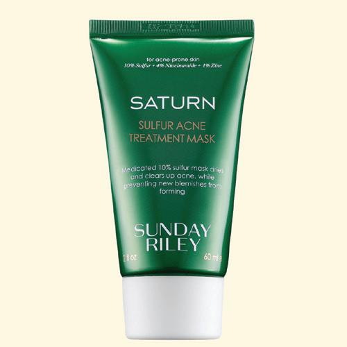 Famous for its drying properties, fast-acting sulfur helps heal and prevent new breakouts by killing acne-causing bacteria. It’s safe to say that sulfur is one of the most powerful ingredients around, so reach for products that contain high-levels of this acne-fighting ingredient for speedy relief. I recommend using a sulfur-based mask like, Sunday Riley’s Saturn Sulfur Acne Treatment , formulated for multiple types of acne, including inflammatory, hormonal, and acne rosacea. Infused with 10% sulfur, zinc and niacinamide, this triplethreat helps to dry out existing acne, regulate oil production and reduce hyperpigmentation. Apply as a facemask and leave on for 2030 minutes, or use as an overnight spot treatment.