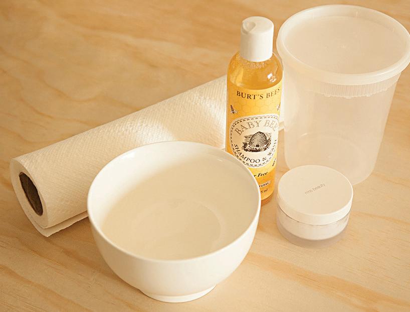 In a microwaveable bowl, mix 2 cups of purified water, 2 tablespoons of coconut oil, and 2 squirts of baby wash.