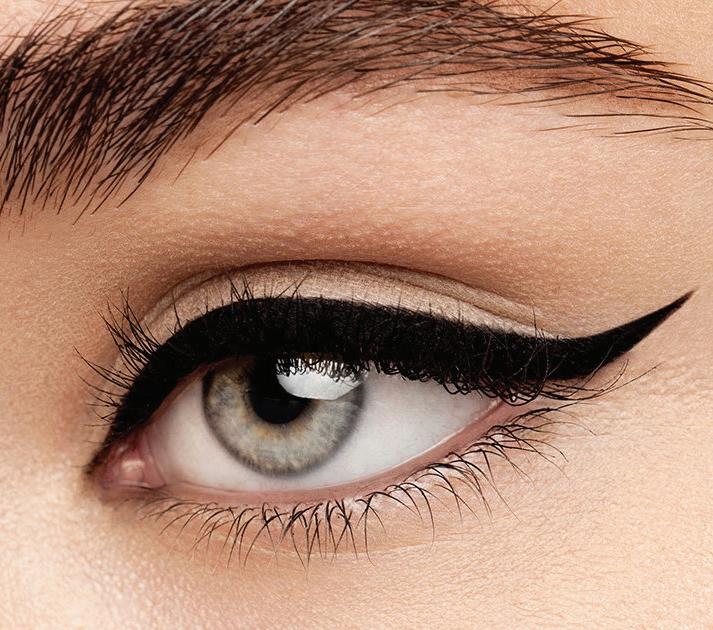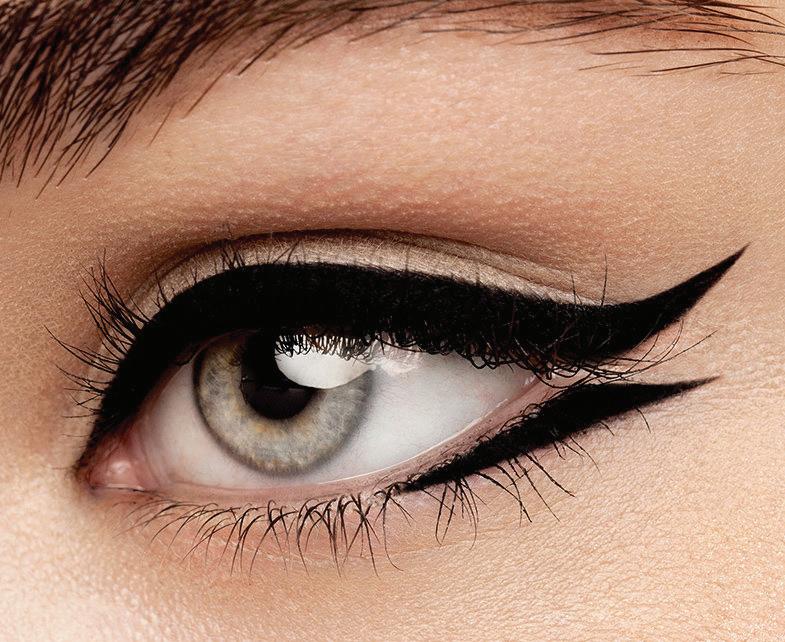 Inspired by ‘60s starlets like Brigitte Bardot and Audrey Hepburn, this retro look is a much thicker version of your basic cat eye. We find it easiest to start by drawing the outline of your wing, and then extending the line along your crease to the inner corner of your eye. Using short strokes, fill the empty space inside your outline with eyeliner. For added drama, tightline your upper eyelid before you begin.
