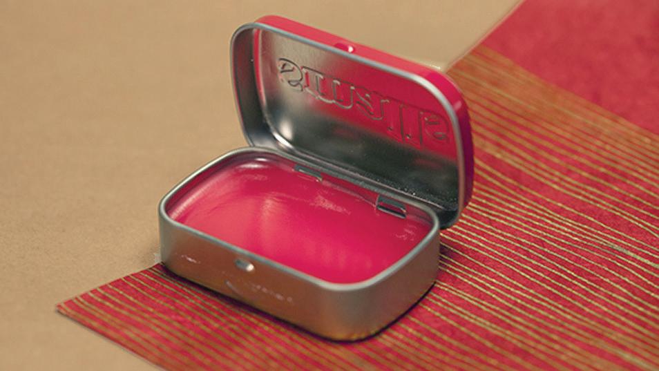Put the two tablespoons carrier oil and one tablespoon beeswax in a glass jar and close the lid. Heat the jar in a pot with water on medium-high heat until wax is melted. Remove jar from pot and stir mixture. Add peppermint oil with a dropper (not too much or it’ll burn your lips—we recommend starting with eight drops and adding more if necessary). If you’d like your balm to be tinted, stir in your lipstick shavings until your desired color is achieved. Then immediately pour the mixture into your containers. Let stand for two hours until hard.