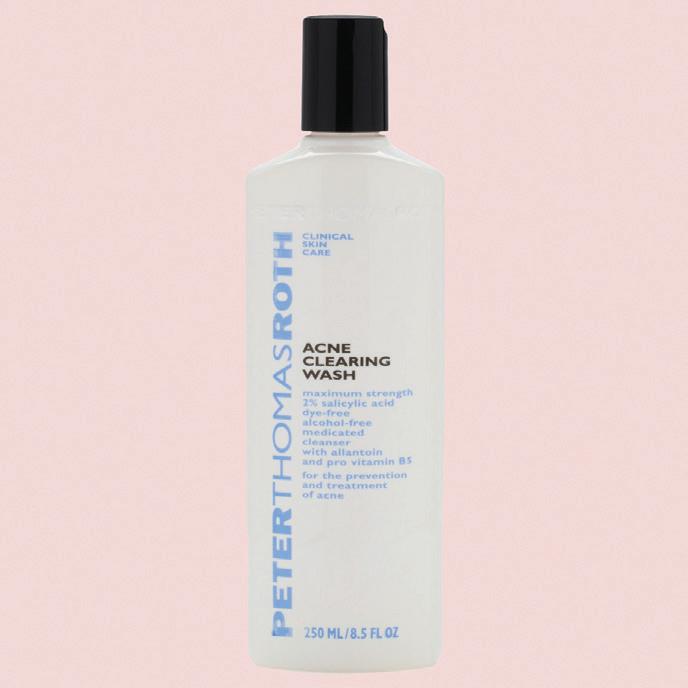 After removing your makeup, go in with a scrub that contains salicylic acid, known for clearing up acne. Your specific skin type will dictate the proper dose of salicylic acid you’ll need for treatment, but remember that high levels of this ingredient can dry and thin skin with long term use. I like the Peter Thomas Roth Acne Face & Body Scrub because it contains a small, yet effective dose of salicylic acid to sweep away dead skin cells and help heal existing acne without stripping skin. Complete with jojoba exfoliating beads and skin-brightening glycolic acid, this scrub leaves my face and body clean minus that tight feeling associated with other skin-drying acne cleansers.
