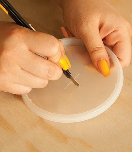 Cut a small “X” in the lid to pull the wipes through.