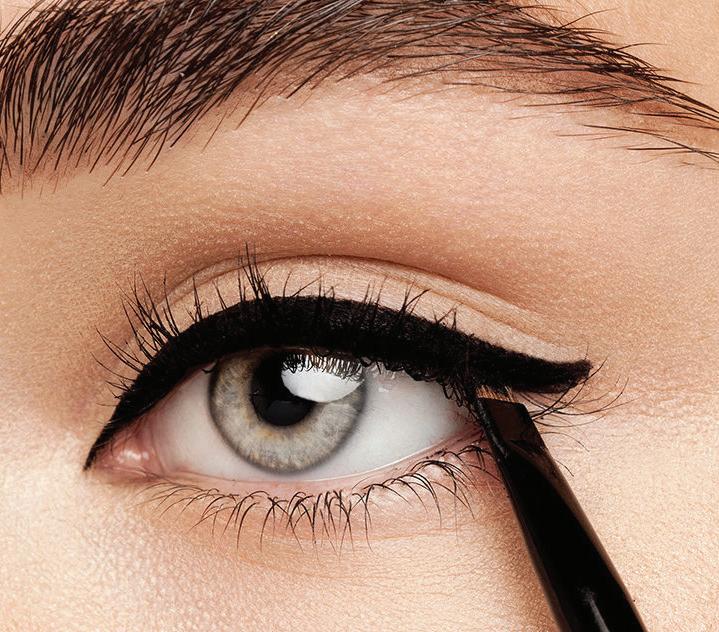 This sultry statement look, an homage to Elizabeth Taylor in Cleopatra, brings all the attention to your eyes. Start by tightlining your upper and lower eyelids, and then apply eyeliner to your upper and lower lashlines. Connect the upper and lower eyeliner with a wing that extends from the outer corner of your eye. It should angle up towards the end of your eyebrow. Using a finetipped eyeliner brush trace along the inner corner of your eye to finish with a sharp point.