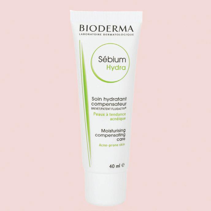 Acne-prone skin endures a decent amount of exfoliation, toning and drying, which can leave complexions feeling extremely parched. Dry, flaky skin can exacerbate acne and cause more blockages due to the build up of dead skin. Make sure you’re drinking 8 glasses of water a day and topically hydrating with an intensely moisturizing cream. Bioderma Sébium Hydra is specifically formulated for acneprone skin, helping to bring back to life complexions that have been weakened by drying treatments. Formulated with vitamin E and ginkgo biloba leaf extract, this buttery blend melts completely into skin to replenish lost moisture and relieve tightness without any residue.