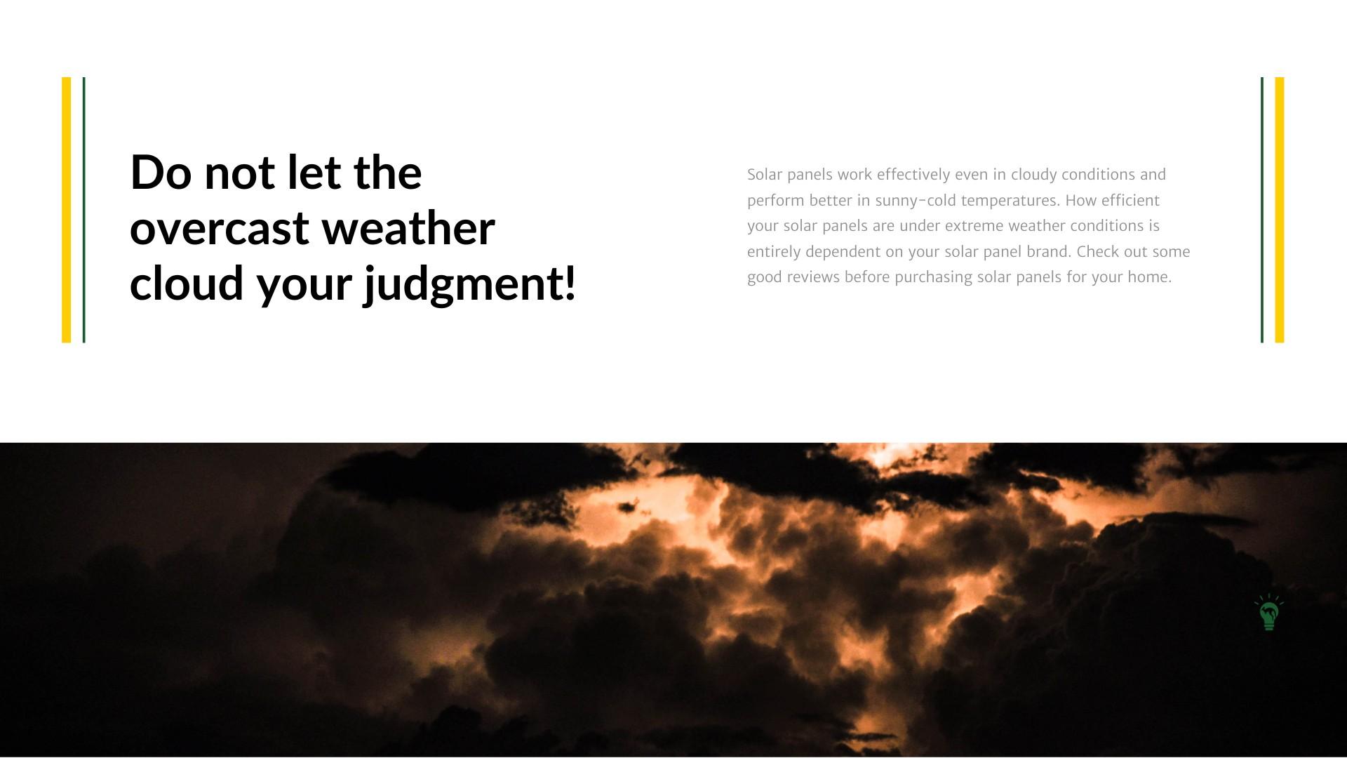 Many homeowners upgrading to solar energy wonder whether solar panels will work efficiently in cloudy or snowy weather. The good news is that solar panels can work brilliantly in cloudy or snowy weather. Solar panels capture the energy from the sun to generate electricity, but that does not mean they will only work during long summer afternoons.