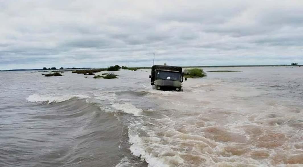 El Batallón de Ingenieros Anfibios 121 utilizó la Barcaza de Transporte Pesado I para salvar a las cabezas de ganado que se encontraban en peligro por las crecidas en ríos del litoral. Página 20