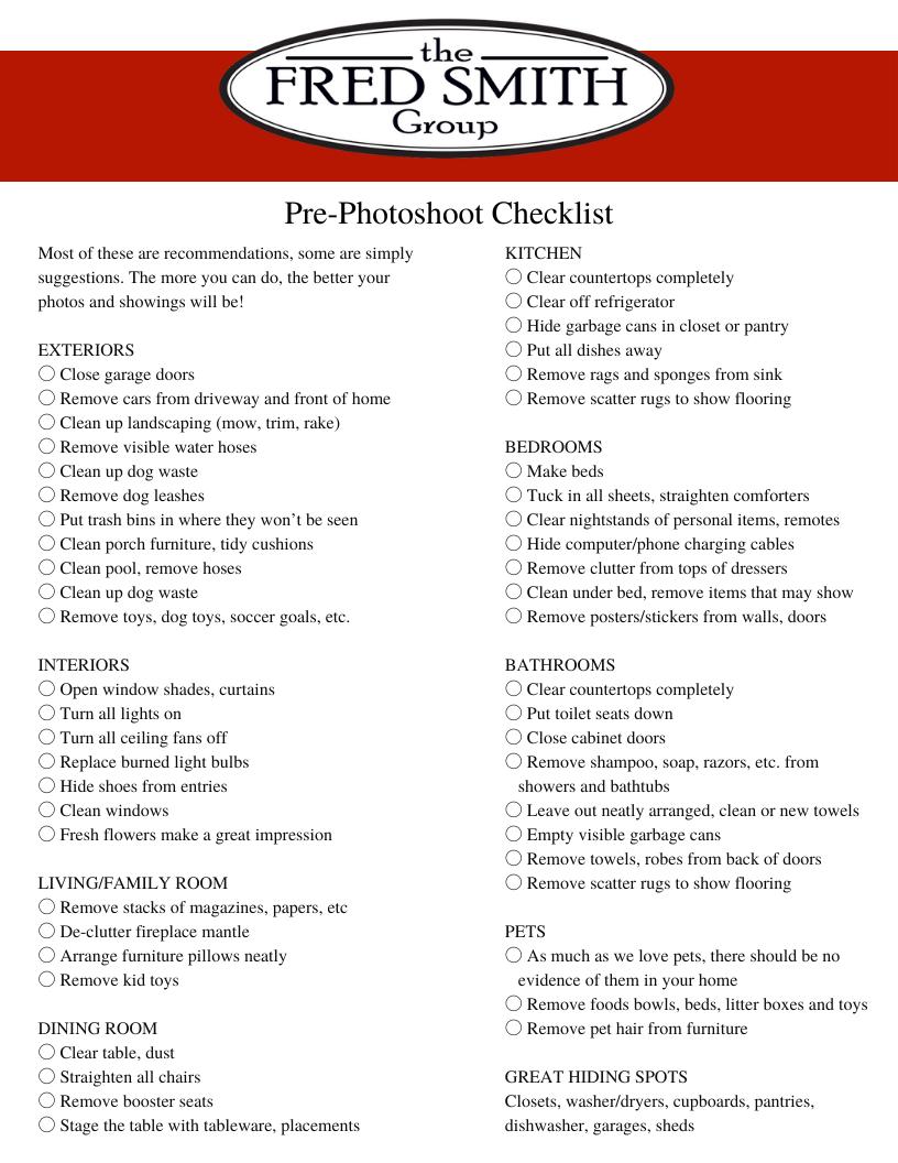 FredSmithGroup com, Flyers, Zillow, Realtor com per marketing plan)