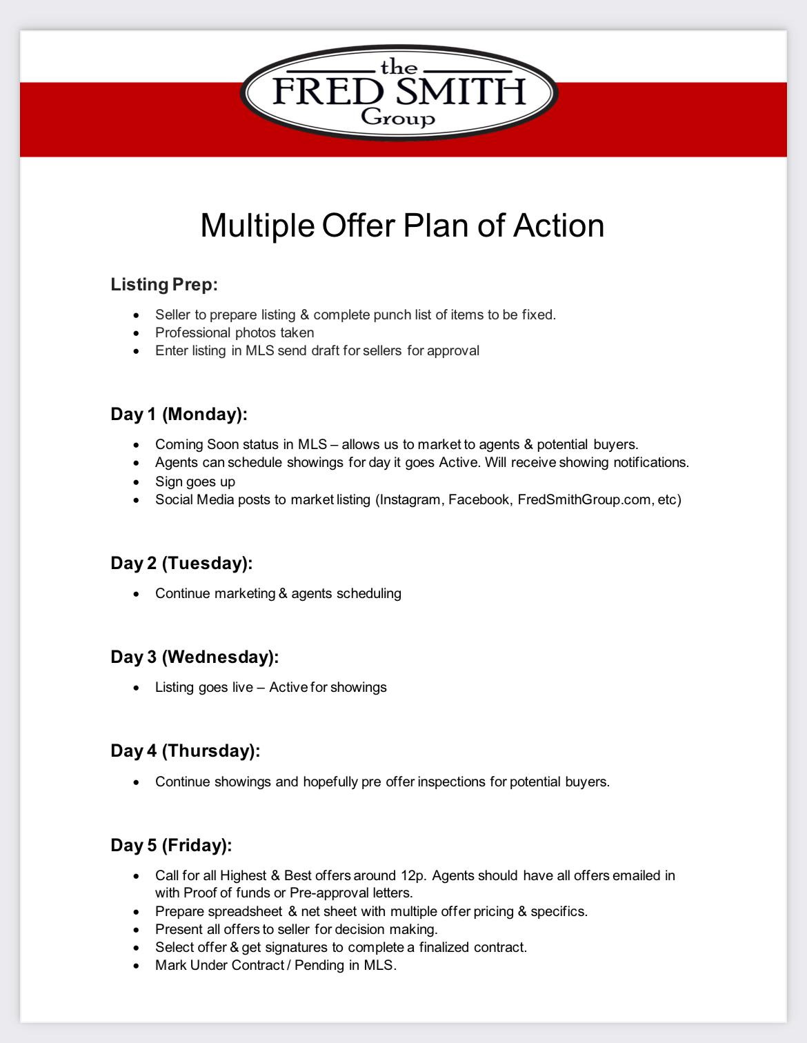FredSmithGroup com, Flyers, Zillow, Realtor com per marketing plan)