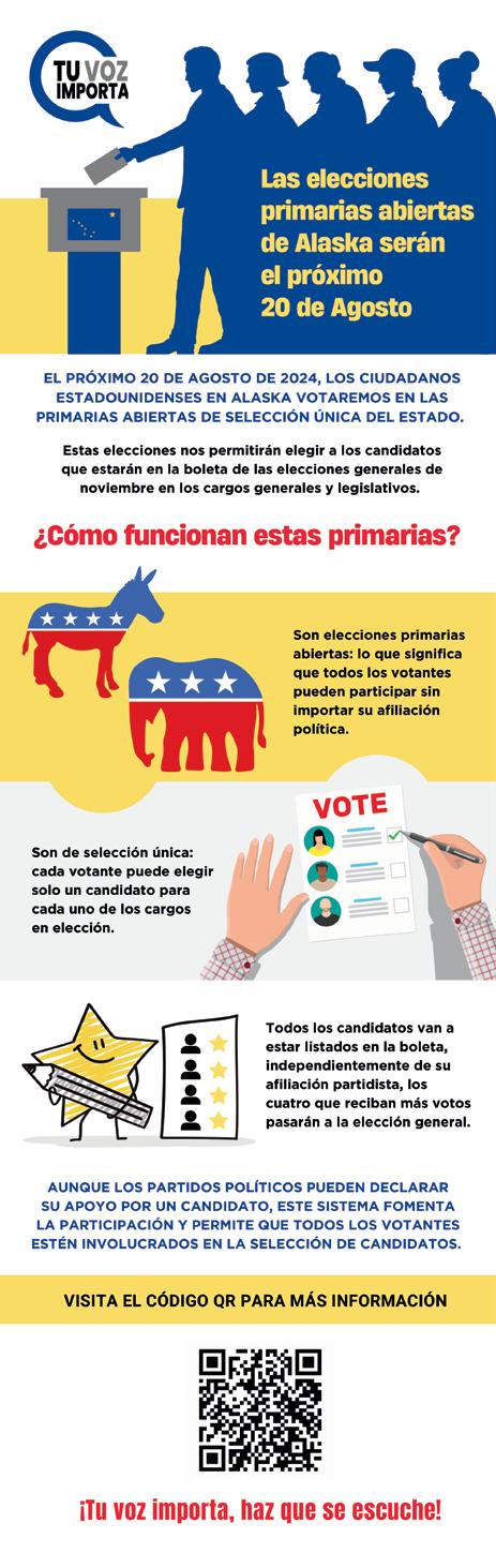 Las elecciones en Alaska están por llegar otra vez! El 20 de agosto de 2024, los habitantes de Alaska podrán votar en las primarias abiertas de selección única del estado. Esto significa que podrás votar por cualquier candidato que se postule para un cargo estatal o legislativo, sin importar a qué partido político pertenezcas. Este enfoque inclusivo es una característica clave del sistema de primarias abiertas de selección única de Alaska, que permite a todos los votantes opinar sobre qué candidatos se presentarán en las elecciones generales de noviembre.