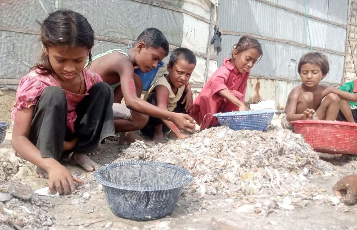 Au Bangladesh, des enfants travaillent pendant des heures sous un soleil de plomb. Certain·e·s n’ont pas plus de huit ans. Dans les sites de démolition navale de Chittagong, des travaux dangereux leur sont confiés pendant que leur père démantèle d’immenses navires. À Cox’s Bazar, leur tâche est d’enlever les arêtes des poissons et de les faire sécher, les mains blessées par le sel, à côté de leur mère qui portent un nourrisson sur le dos sous une chaleur suffocante. Le travail des enfants est également très répandu au Burkina Faso : selon une étude de l’office burkinabè de la statistique de 2022, environ 40 % travaillent, dont un tiers dans des conditions dangereuses et interdites pour les enfants, en tant