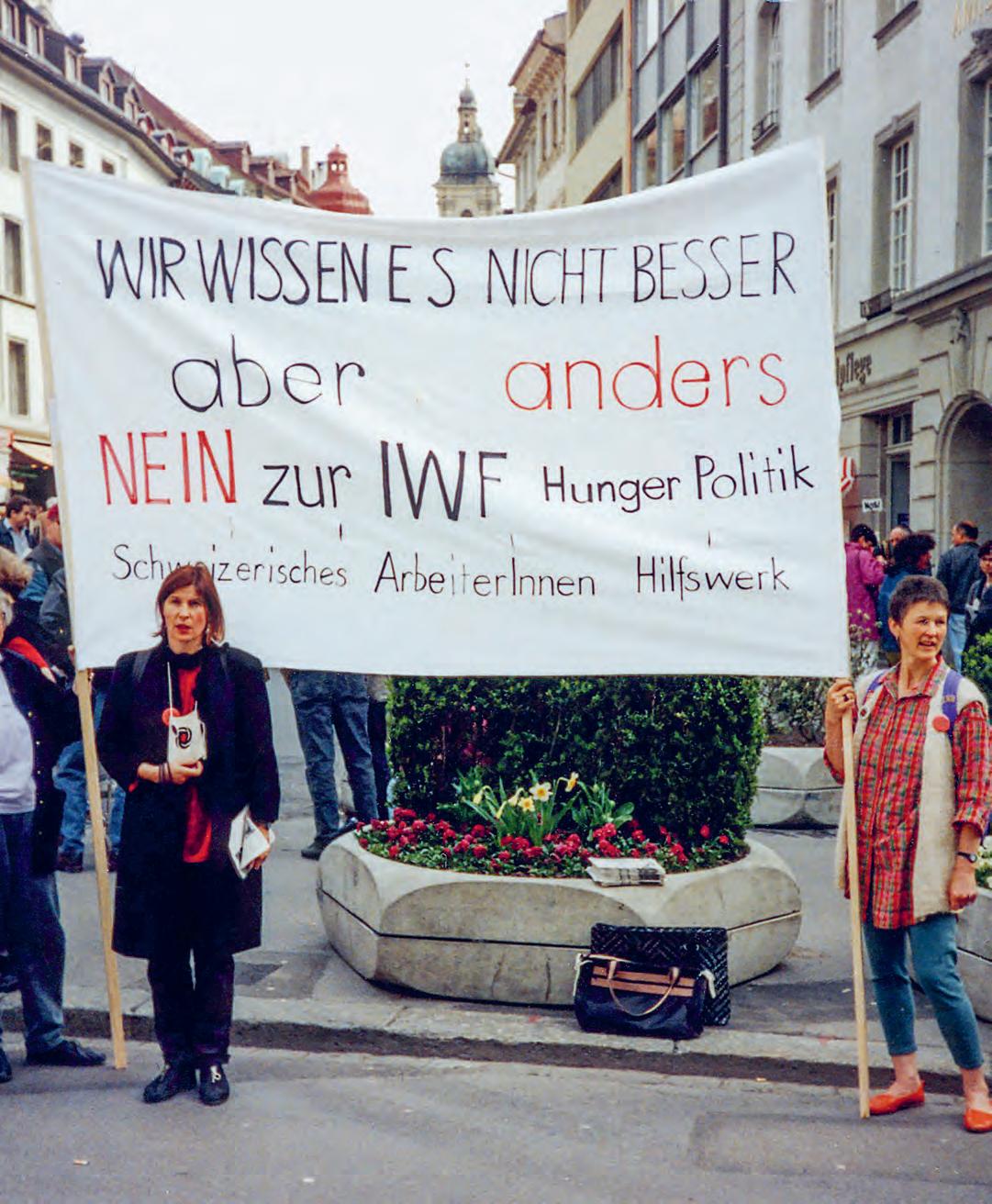 Das Schweizerische Arbeiterhilfswerk SAH (aus dem Solidar Suisse hervorging) hat sich stets für soziale Gerechtigkeit weltweit engagiert – und ging dafür auch immer wieder auf die Strasse. Zum Beispiel 1992 im Vorfeld des Referendums gegen den Beitritt der Schweiz zum Internationalen Währungsfonds (IWF). Leider unterlagen wir in der Abstimmung, und tatsächlich führte die IWF-Politik wie befürchtet zur massiven Verschuldung der Länder des Globalen Südens.