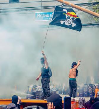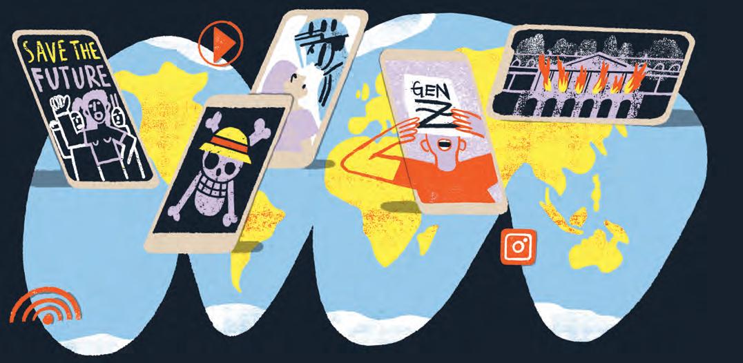 2025 war ein Jahr der Auseinandersetzungen: anhaltende Konflikte in Europa, Asien und Afrika, politische Umwälzungen rund um den Globus. «Gen-Z-Proteste» wurde in den internationalen Medien zum Begriff: die Proteste der etwa zwischen 1995 und 2010 Geborenen – sprich der 15- bis 30-Jährigen. Es ist die erste Generation, die kein Leben ohne Internet und andere digitale Technologien kennt. Sie fordert Veränderungen mithilfe von Memes und Hashtags, verbunden auf SocialMedia-Plattformen durch gemeinsame Symbole wie der Flagge der S trohhutpirat*innen (siehe Seite 11), reagiert und mobilisiert sie schnell. Sie wartet nicht auf Veränderungen, sondern führt sie selbst herbei.