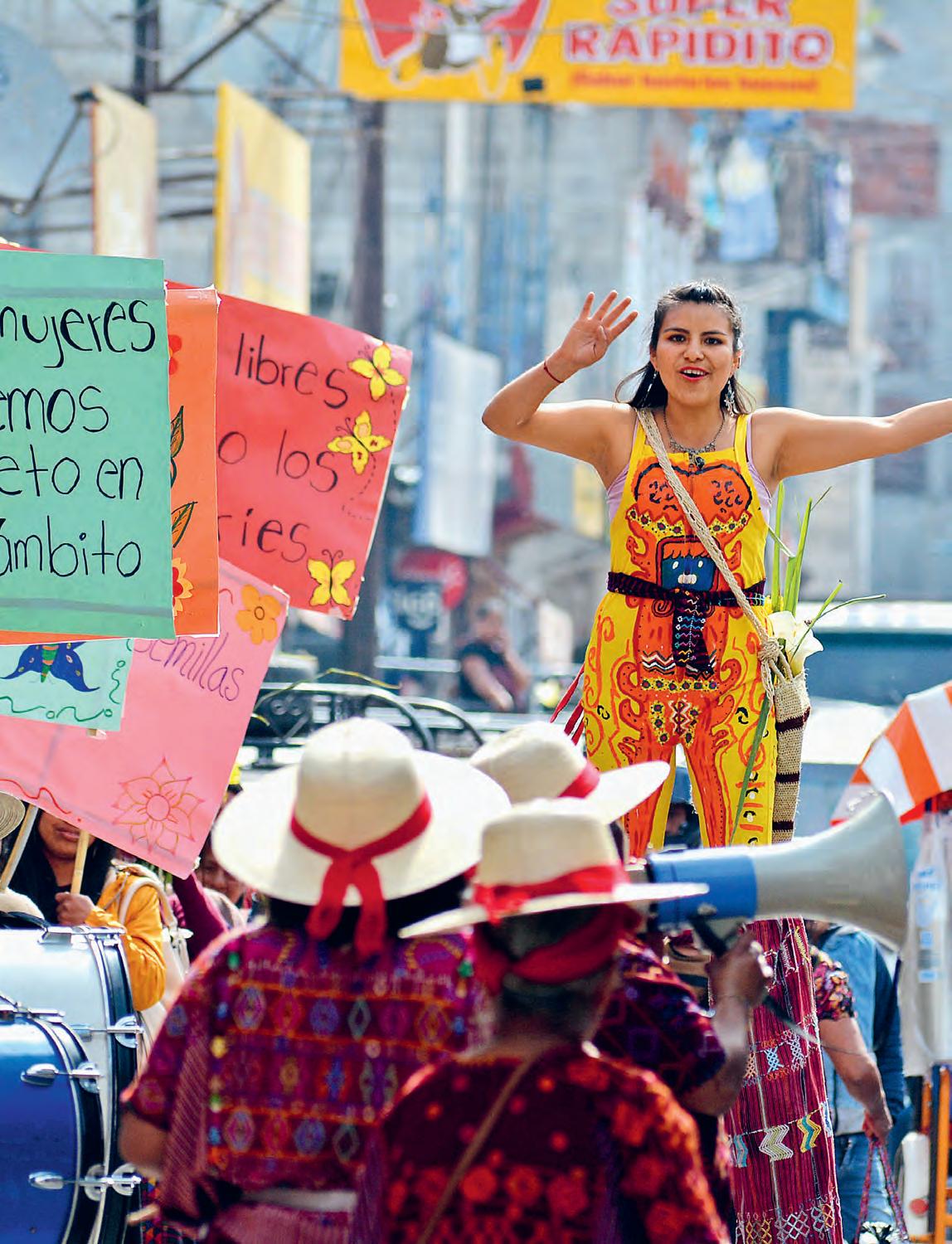 Aus Gewalt erwächst Widerstand Trotzdem stellen sich mutige Jugendliche unserer Partnerorganisation Colectiva Actoras de Cambio öffentlich gegen Gewalt. Sie unterstützen sich gegenseitig, machen Aufklärungsarbeit und führen Workshops durch. Hier lernen Jugendliche ihre Rechte kennen und können ihre Gewalterfahrungen verarbeiten. «Wir erkennen, dass wir als Frauen über unseren Körper entscheiden können», berichtet Workshop-Teilnehmerin Flores Xiquin*. Dank des neu gewonnenen Selbstvertrauens wehren sich die Jugendlichen gegen die Gewalt und motivieren Gleichaltrige, dies auch zu tun. Mit Theateraufführungen in den Dörfern, übers Radio, auf Social Media und an Demonstrationen engagieren sie sich für Frauenrechte – trotz massiver Stigmatisierung aus Kreisen, die Frauen weiter abwerten und Macht über deren Körper behalten wollen. «Wir haben keine Angst mehr», sagt Flores Xiquin. ·