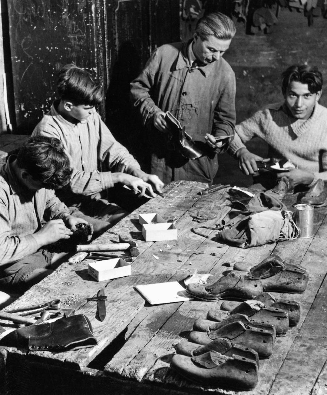 En 1948, de jeunes garçons et des hommes du « foyer pour inadaptés » Cesare Beccaria d’Arese, non loin de Milan, fabriquent des chaussures avec du cuir offert par l’Œuvre suisse d’entraide ouvrière (OSEO), devenue Solidar Suisse. À l’époque, il n’était pas question de chaînes d’approvisionnement complexes et injustes. Cette action d’aide s’inscrivait dans le travail de soutien mené par l’OSEO dans les pays voisins dévastés par la guerre, qui débuta par l’envoi de colis alimentaires.