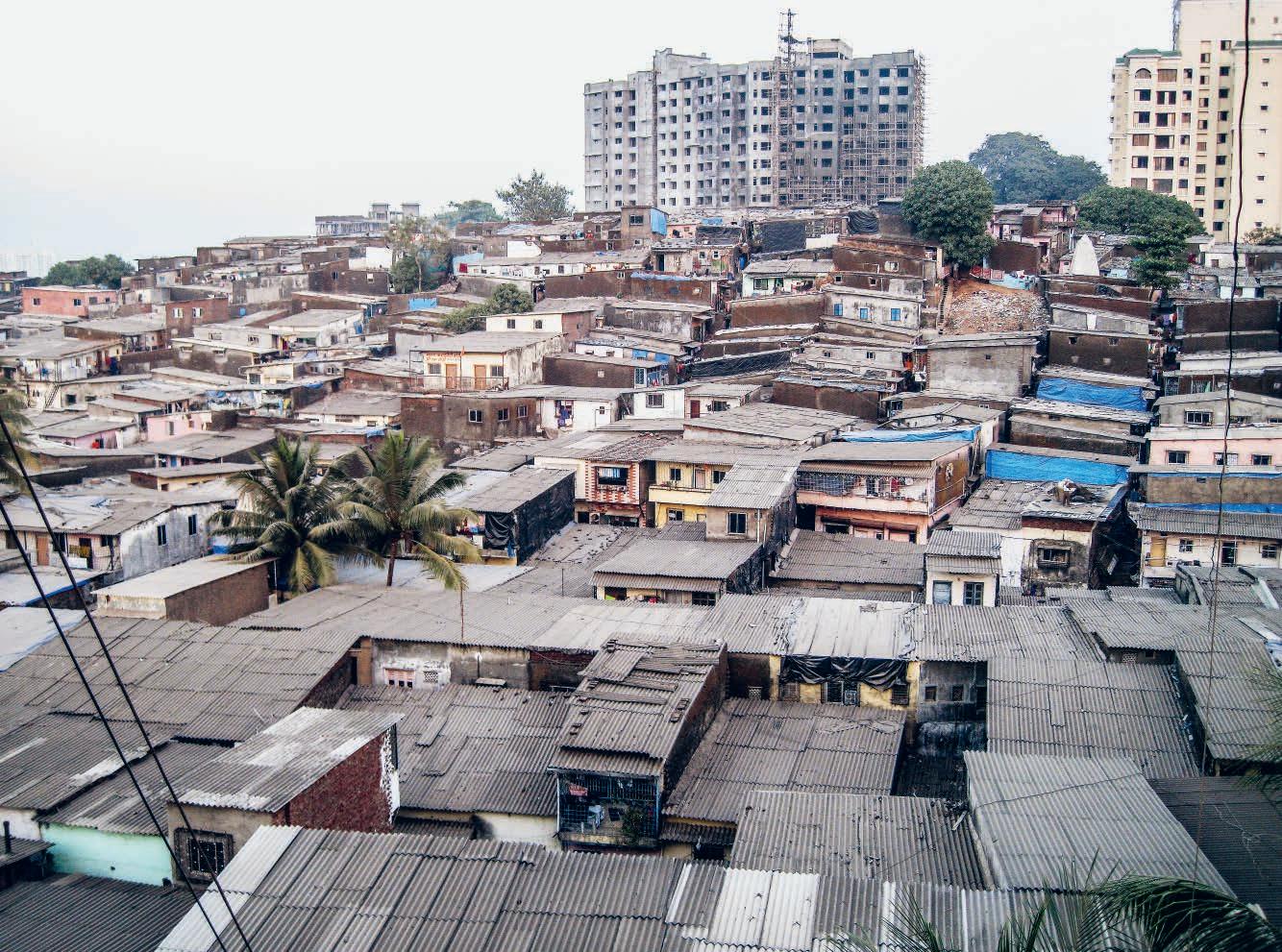 Häuser eines Armenviertels in Mumbai, deren gewellte Dachplatten mit grosser Wahrscheinlichkeit Asbest enthalten.
