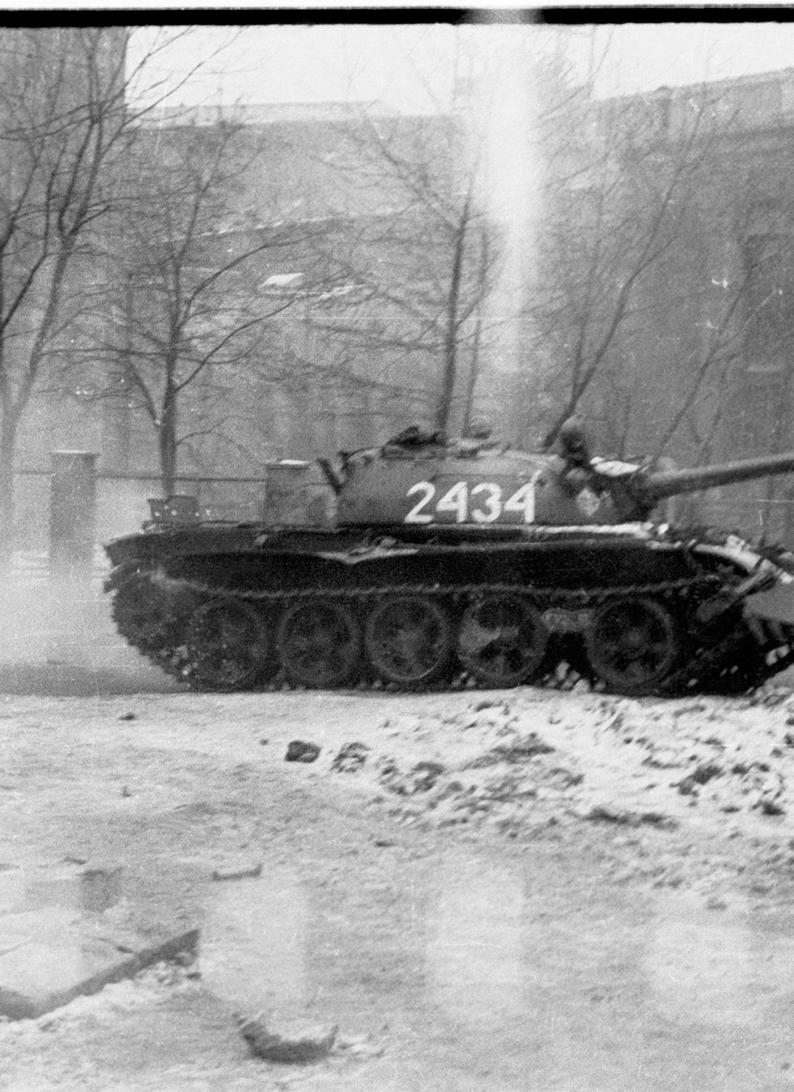 Na zdjęciu: 16.12.1981 Katowice Brynów, Stan wojenny w Polsce Pacyfikacja kopalni Wujek n/z czołg na terenie kopalni. fot. Marek Janicki/FOTONOVA