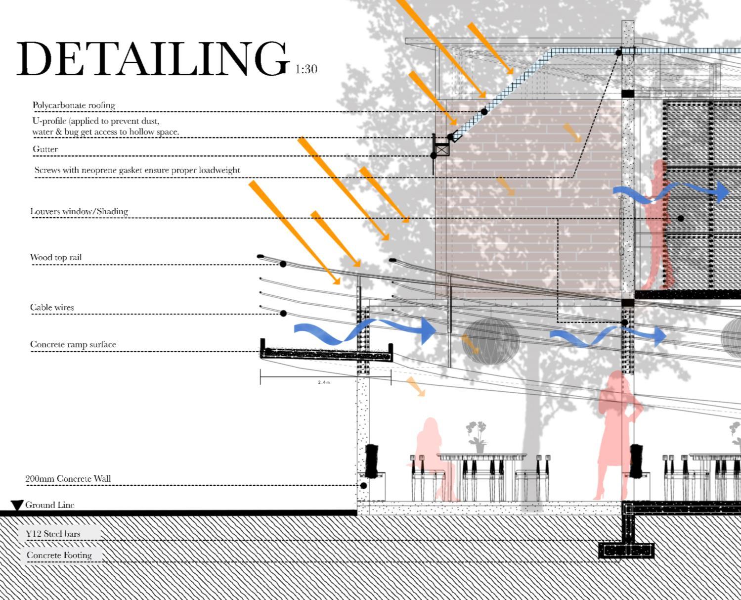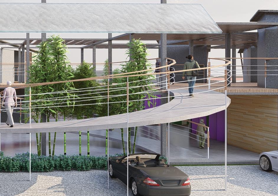 The introduction of a spiral ramp adds an element of universal design, ensuring inclusivity and accessibility for all This thoughtfully conceived feature not only serves its practical purpose but also becomes a nexus for interactions, enabling residents to connect and engage with the broader community that extends beyond the boundaries of this architectural masterpiece