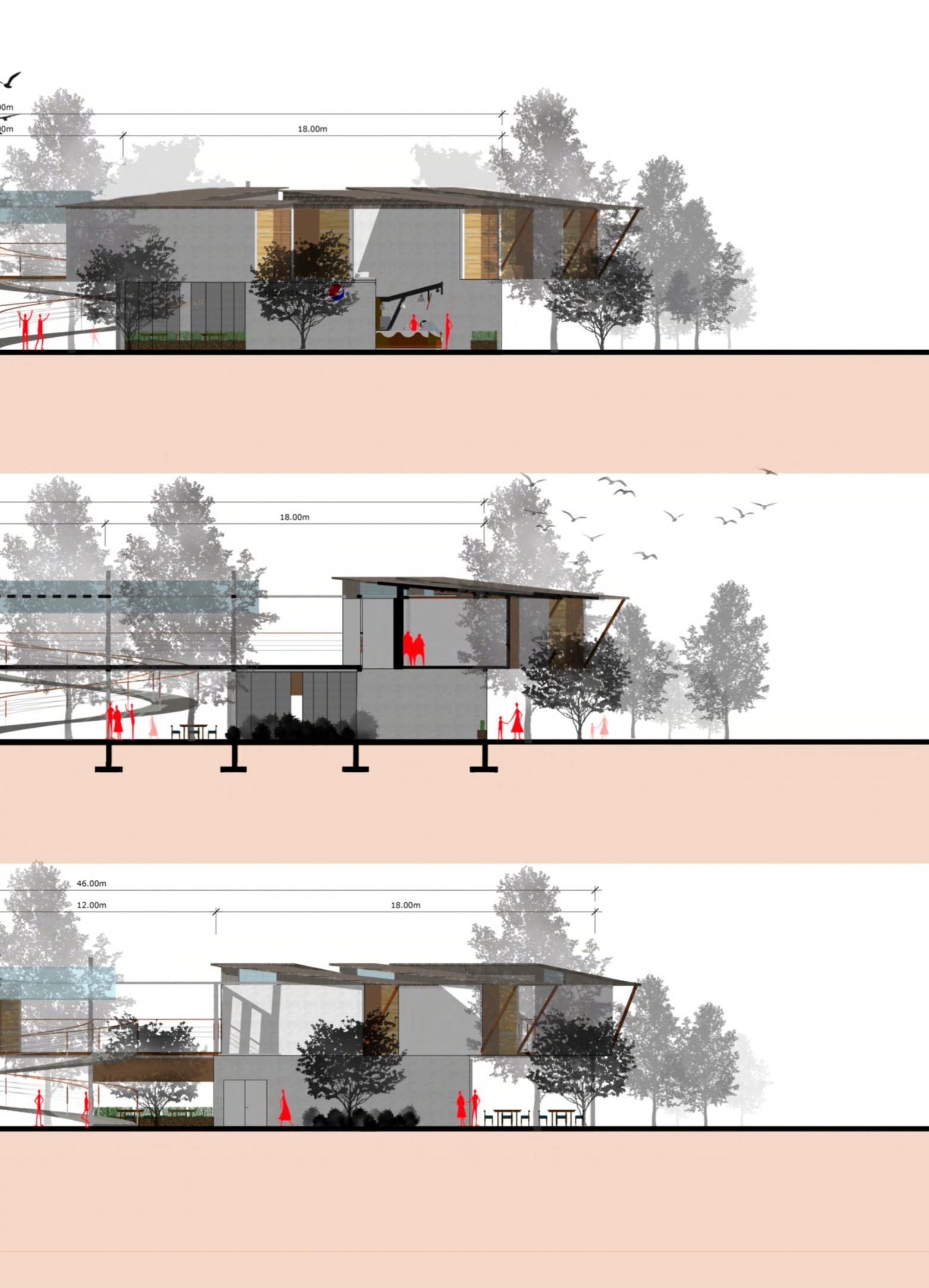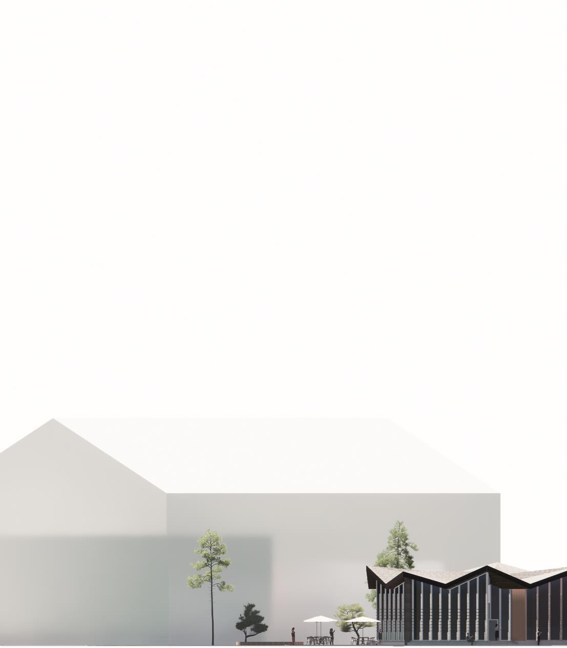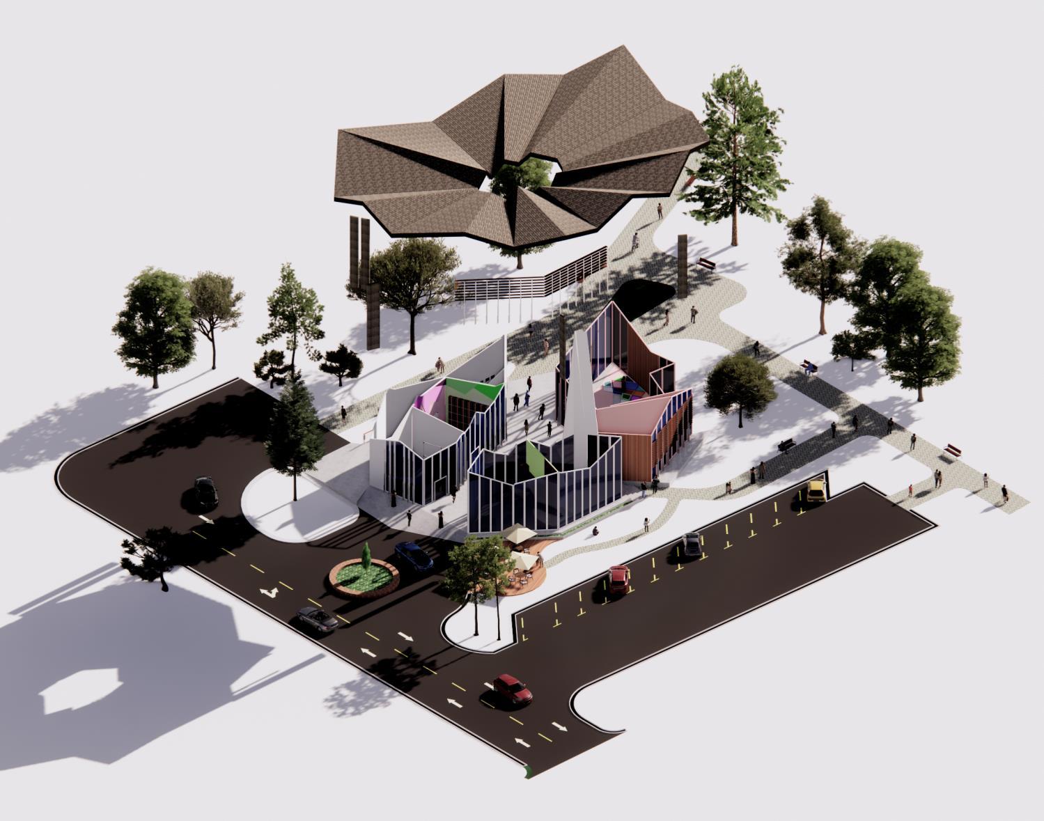 The architectural scheme undergoes a transformation inspired by the principles of Tetris and the form of a cube. This reimagining breathes new life into the existing structures, paving the way for innovative solutions that culminate in the creation of high-quality spaces The design ethos places paramount importance on fostering openness both within the indoor spaces and their connections to the external environment, establishing a harmonious relationship with the contextual surroundings