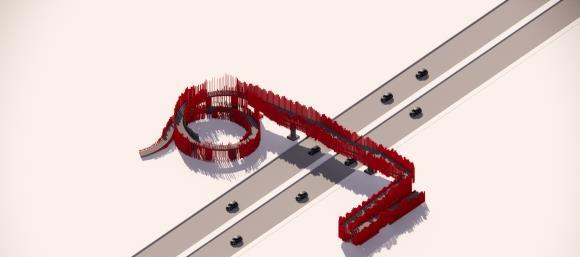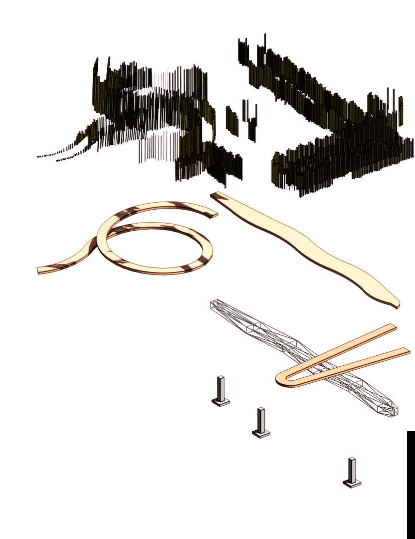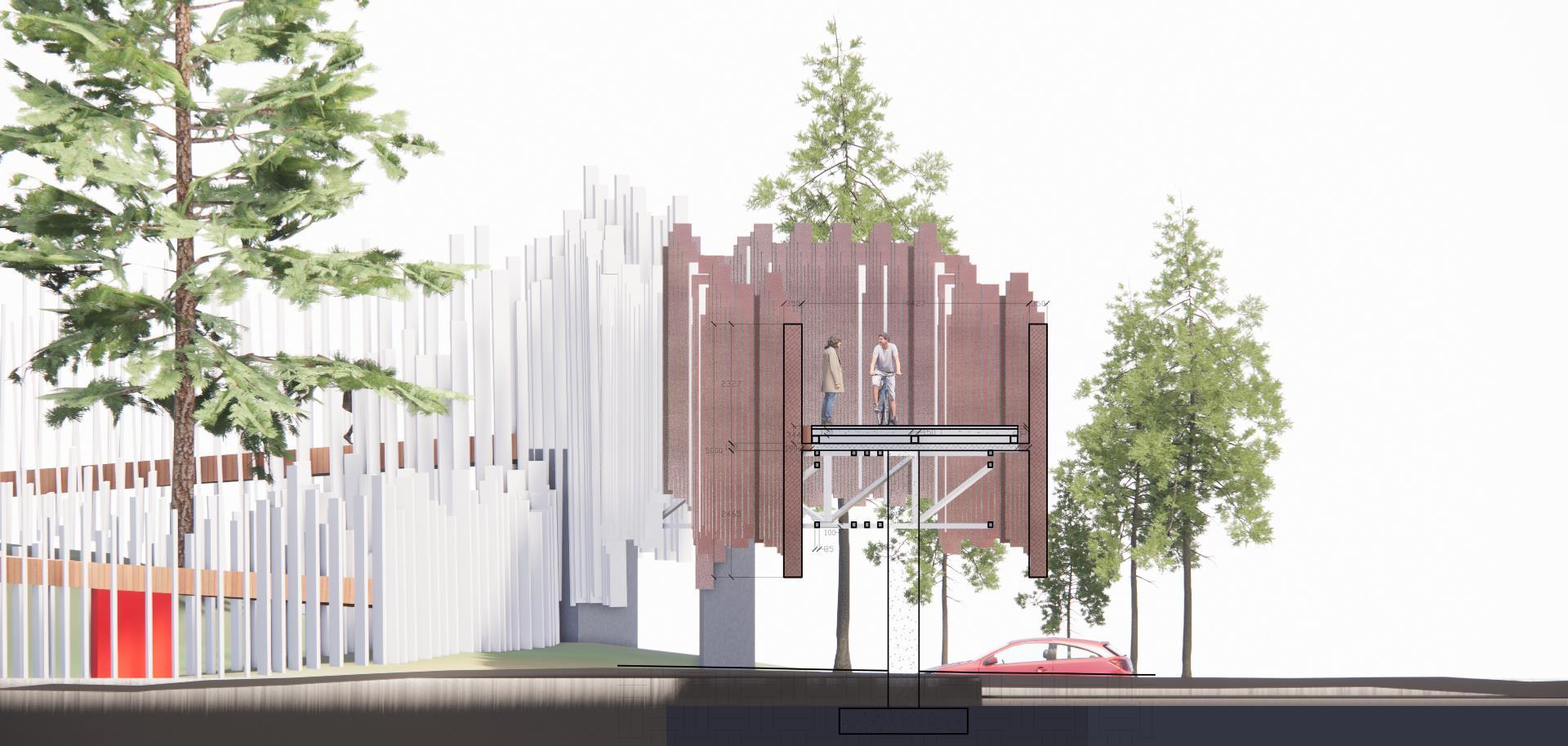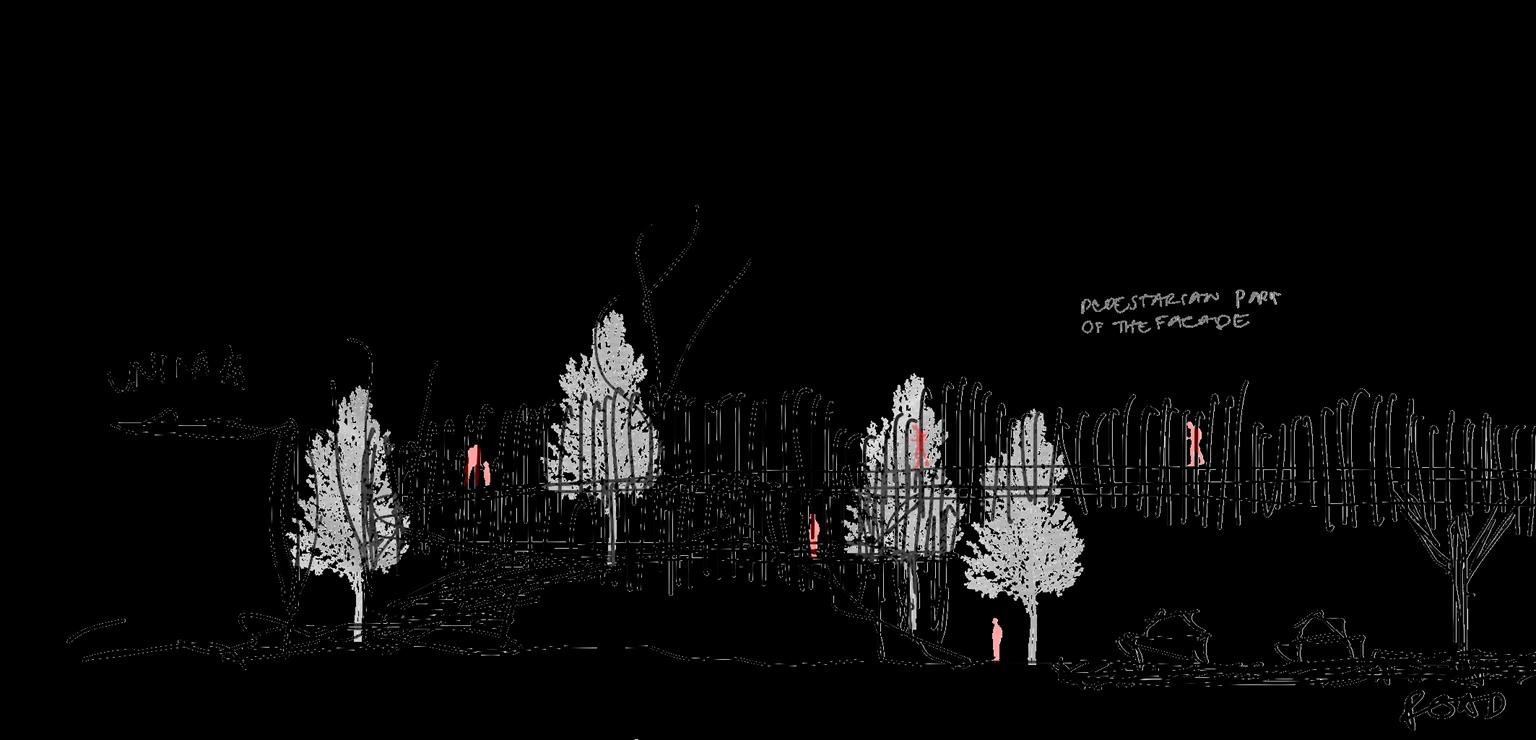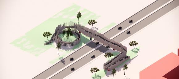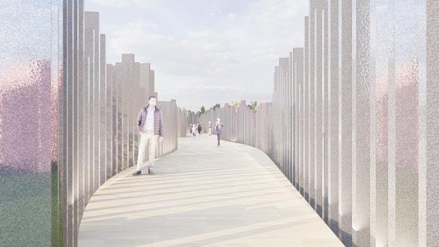 SKYRORAMA is designed to be an iconic and functional pedestrian and cyclist bridge that not only serves as a transportation link but also as a work of art and a spectacle in itself. The key architectural concept revolves around creating an illusion of weightlessness and a dynamic, ever-changing facade that engages with the surroundings.